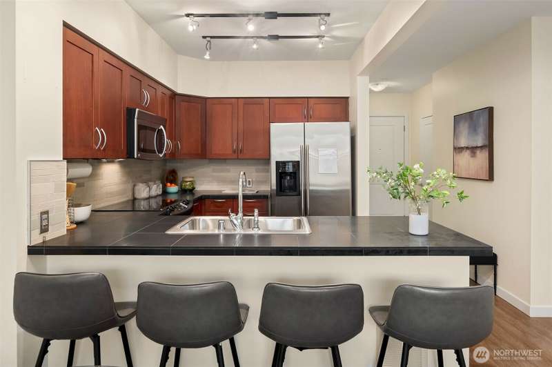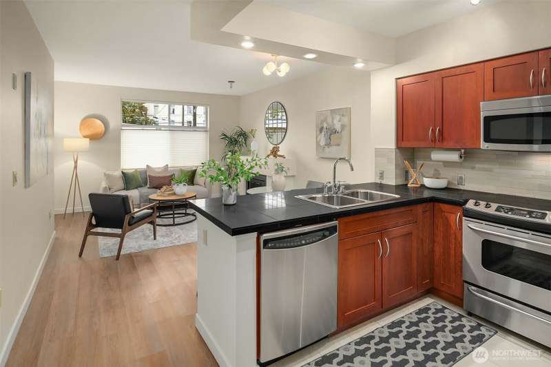 Just steps from the best of Ballard, this one-bed condo puts you in the heart of one of Seattle’s best neighborhoods with style and convenience all in one. This open concept unit includes its own washer and dryer, SS appliances, and gas fireplace. You’ll appreciate the function and flow of the well-sized kitchen with lots of cabinetry plus plenty of additional storage in the unit. The bathroom is similarly well-sized with more storage and counter space. Enjoy mornings and evenings on your private deck or take advantage of one of the many amenities including gym, hot tub, BBQ area, lounges, and conference room. Afterwards, you can park your car and bike in the secure parking spot and enjoy the amazing walkability of this great neighborhood.