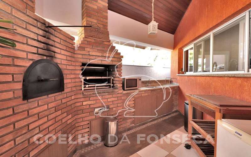 Magnífica residência, amplo living com portas de correr tornando o ambiente totalmente arejado e iluminado, cozinha com projeto arrojado e sala de almoço, finíssimo acabamento em mármore. Ótima área gourmet e piscina.