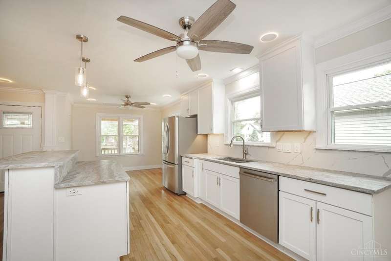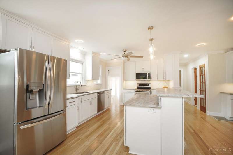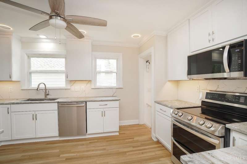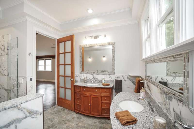 Welcome to this beautifully updated 5 BR, 5 F BA home-refined design & timeless craftsmanship. Reno w/prem fin thru out, spacious w/ hdwd floors, custom fin & open concept kit & dining perfect for entertaining. The gourmet kit feat 42 cab, granite, SS appl, slab backsplash, crown mold & halo LED lights. Island offers add'l seating, work & entertaining space-flows seamlessly into the dining w/ wine bar, wine fridge, built ins & stone fp- perfect atmosphere for hosting. Luxurious Primary Ste- true retreat, vltd ceil, dbl crown w/custom trim, dbl walk in closet,1 w/ vanity & dress area. The spa inspired en-ste BA is complete with heated fl, jetted tub, lavish shower w/ 3 heads and Bluetooth custom lighting. Add'l highlights-33 Grid Solar Array, zoned HVAC, luxe BA, dbl stairs, Juliet balc, 2nd fl laun, fin LL w/ poss add'l laun, 3 car gar & relaxing wrap around porch. Extensive storage thru out, Sycamore Schools, walkable neighborhood-dine & shop. Ample parking off Belleview.