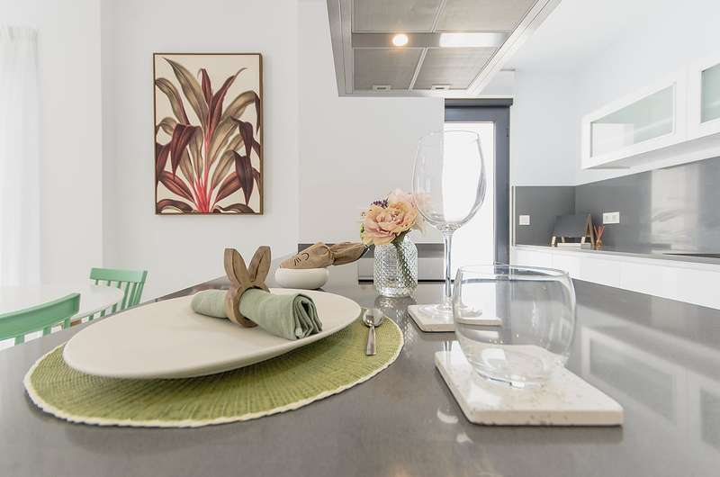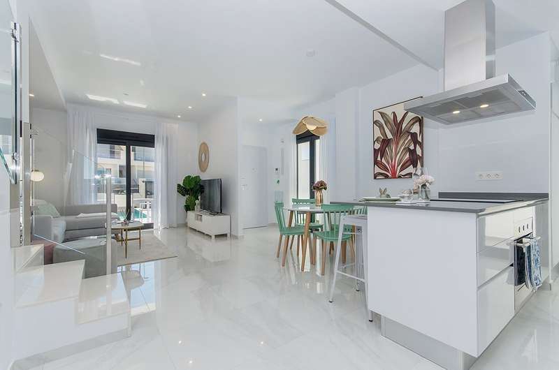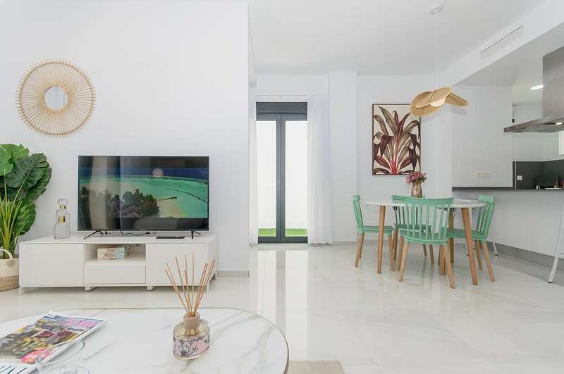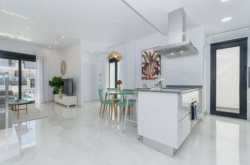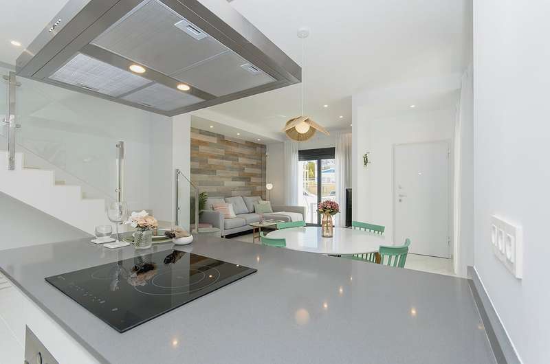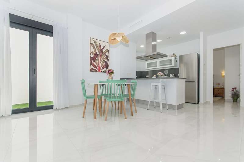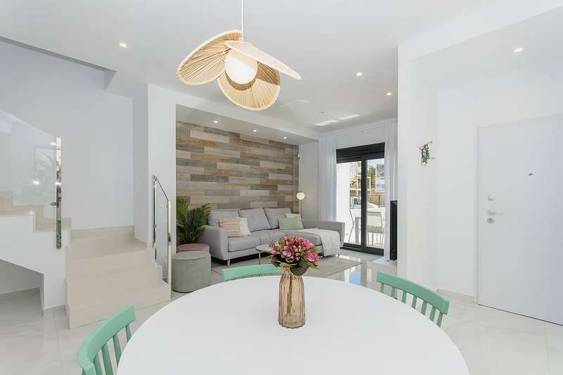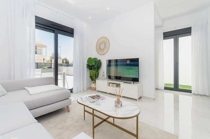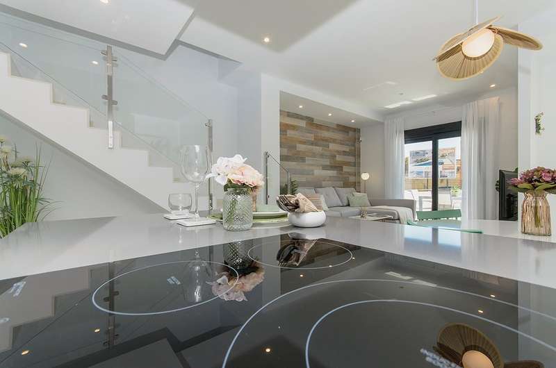 These newly constructed villas for sale in Bigastro, Alicante are conveniently located within walking distance of an acclaimed 18-hole golf course, San Miguel, and just a 5-minute drive from Los Montesinos. Additionally, the pristine blue flag beaches of the Mediterranean coast can be reached within a short 15-minute car ride. Traveling to and from these exceptional villas is effortless, as the Alicante airport is a mere 30 minutes away, and the international airport of Murcia is within an hour's drive.