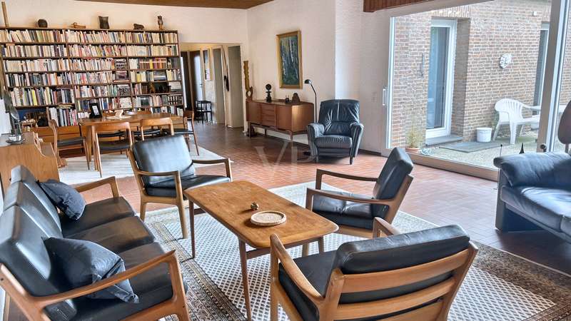 Angled bungalow with great potential in the sought-after Haan musicians' quarter Welcome to one of the best addresses in the Bergisches Land: the Haaner Musikantenviertel - a quiet, green and yet excellently connected residential area in the sought-after suburbs of Düsseldorf. This charming corner bungalow from 1972 awaits you here, offering plenty of space, a well-thought-out room layout and great scope for design. On a 457 m² plot, the detached house, which is attached on one side, offers around 143 m² of living space - ideal for anyone who values spacious, ground-floor living and wants to customize their new home. Space for family, couples & creative ideas The bungalow has a total of five well-designed rooms, including three bedrooms. Whether you are a family with children, a couple with space requirements or a home office user - everyone will find their space here. Two bathrooms ensure comfort in everyday life and make the morning routine just as easy as relaxing evenings. The spacious living and dining area is the heart of the home: large windows let in plenty of natural light and create an inviting, friendly living atmosphere - perfect for socializing and relaxing. Private garden - your green refuge A special highlight is the secluded garden, which is just as ideal as a retreat as it is as a playground, barbecue area or blooming oasis of well-being. Here you can design your outdoor space exactly as you wish and enjoy sunny days in a private atmosphere. Partial basement with direct garden access The partial basement offers valuable storage space, room for hobbies, a workshop or home office. An external staircase leads directly into the garden. In need of renovation - but full of opportunities The house is in a very well-kept condition but in need of modernization and offers you the rare opportunity to design a solid property in a top location according to your own wishes. Whether energy-efficient refurbishment, a modern room concept or high-quality furnishings - you decide the style here. Location advantage: live quietly, quickly connected The Musikantenviertel is one of the most popular residential areas in Haan. Here you can enjoy a quiet, green environment and at the same time benefit from excellent connections: You can reach Düsseldorf city center in a short time, as well as Wuppertal, Solingen and Cologne. Shopping facilities, schools, kindergartens and all everyday amenities are within easy reach - ideal for families and commuters. Conclusion A home for anyone who appreciates the convenience of living at ground level, loves design freedom and is looking for a location that will retain its value. This corner bungalow combines a solid foundation with great potential - in one of the most sought-after residential addresses in the Düsseldorf area. Available immediately - let yourself be convinced by the charm and possibilities of this property during a viewing and arrange a personal viewing appointment today. We look forward to hearing from you.