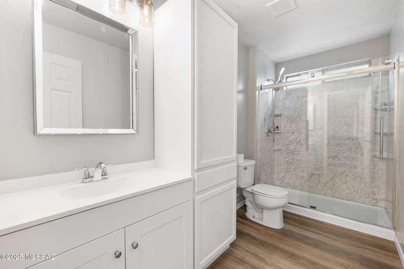 Step inside a home that feels like a fresh start. Warm hardwood floors lead you through an open, sunlit great room where new paint sets the stage for your story. The kitchen's custom countertops add a touch of sophistication, while a remodeled bath brings everyday luxury. With a downstairs bedroom and an upstairs primary suite, the layout offers comfort and flexibility. Outside, a wide-open backyard waits--blank, promising, ready for the oasis you imagine. This is more than a house. It's a canvas for the life you've been wanting to create.