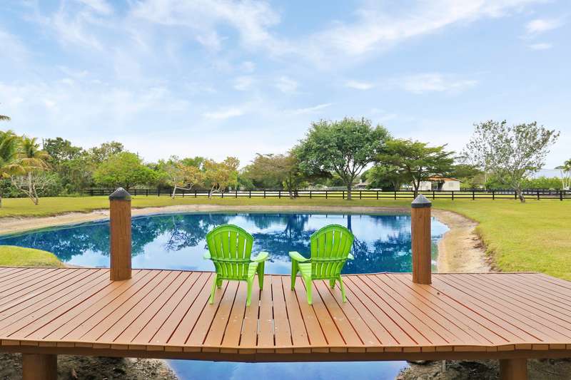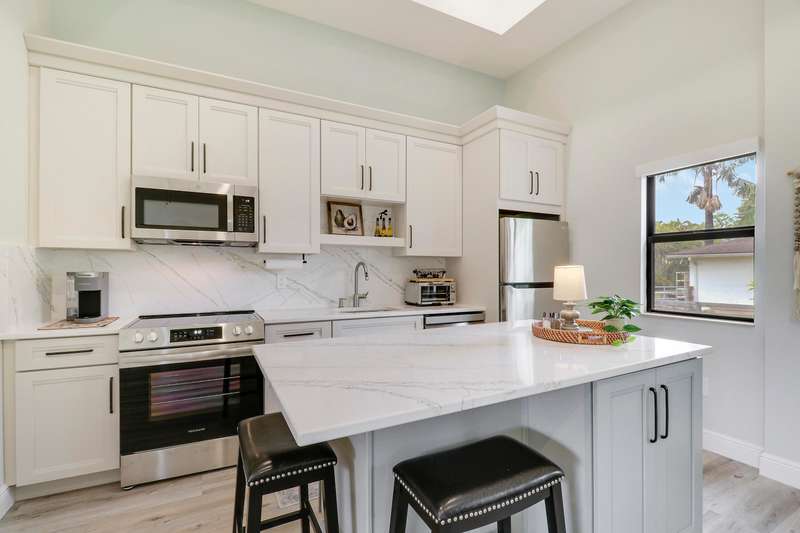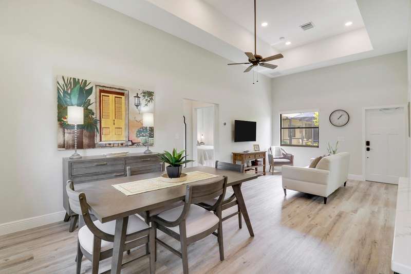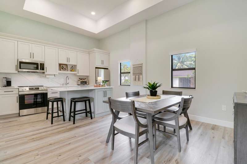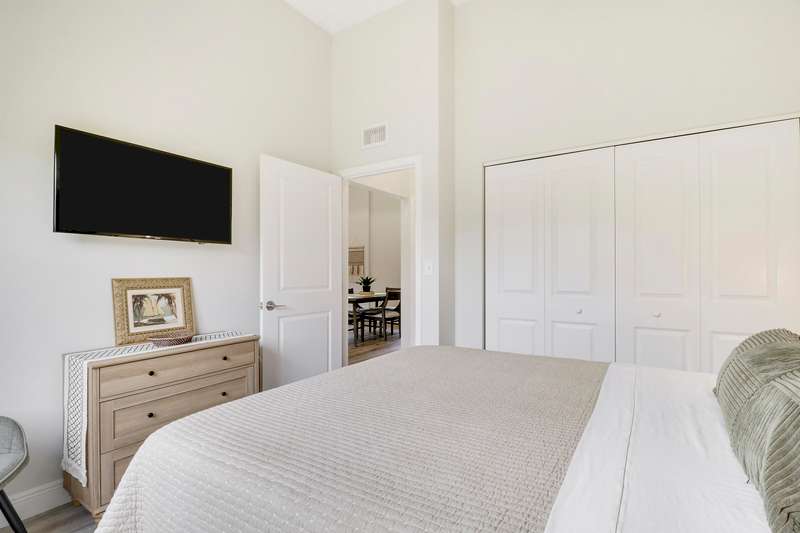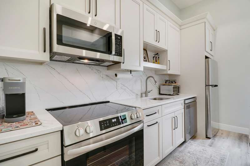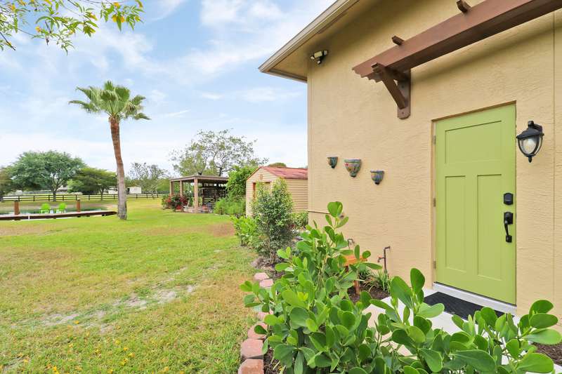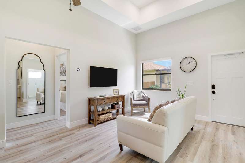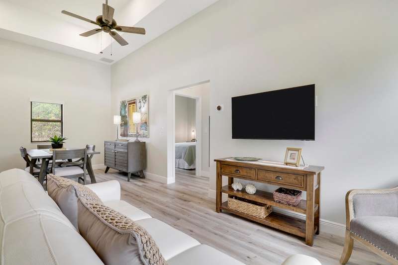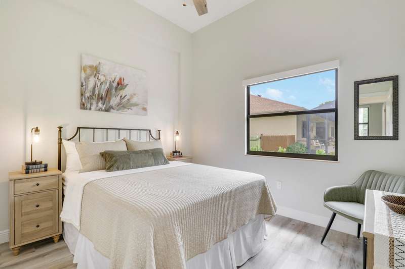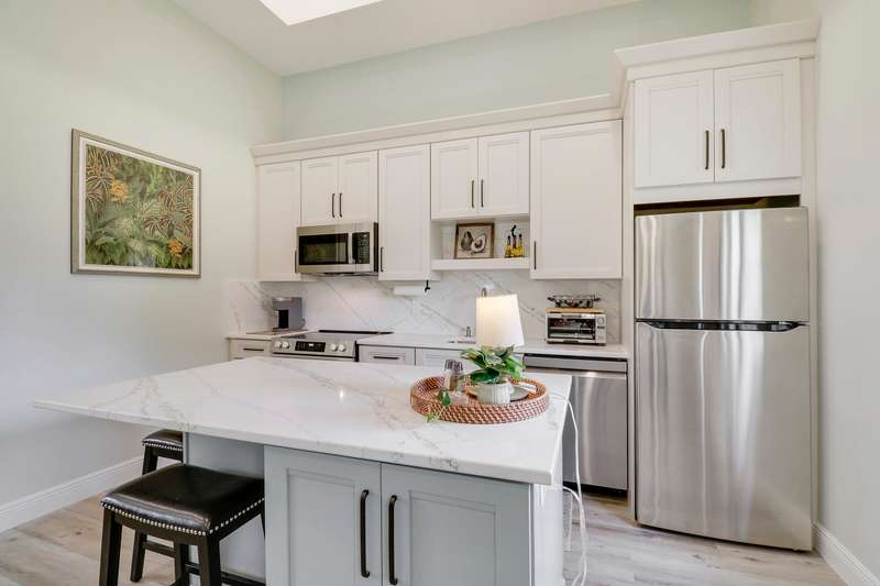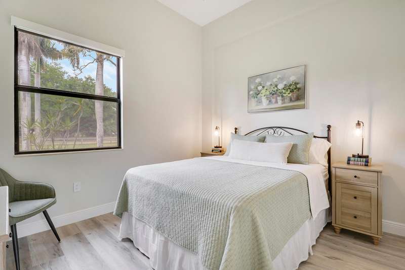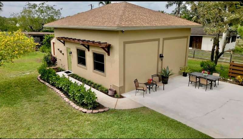 Discover tranquility and contemporary comfort at this stunning, brand new guest house, ideally situated in a serene and quiet location perfect for your Polo Season stay. Impeccably built and never before occupied, this inviting residence features two comfortable bedrooms: each with a queen size bed, one offering a full closet and the other equipped with an armoire closet. Enjoy luxurious touches throughout, including 14 foot ceilings with stylish 12 inch soffits, sleek quartz countertops, and high end stainless steel appliances.Convenience is key with thoughtful details like soft close cabinetry, pull out drawers, an in unit washer and dryer, and a contemporary walk in shower. Relax comfortably in the living space furnished with a plush couch and chair, or enjoy entertainment
