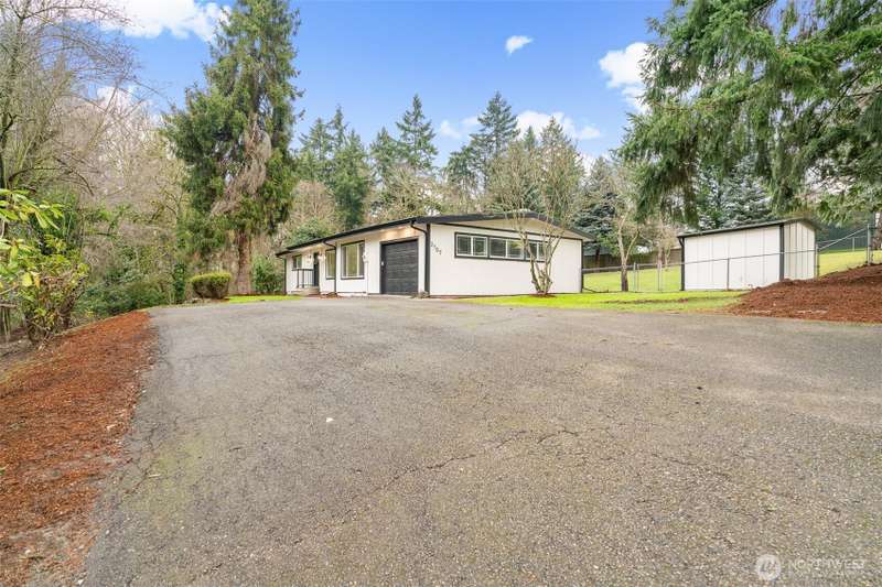 PRIVATE Light, Bright & Airy recently remodeled cozy 3 Bed 2 Bath rambler that lives large in all the right places on HUGE 2/3rd acre fairly level fenced lot. NEW in 2022: electrical, plumbing, roof, water heater, outlets, switches, lighting, siding, windows, gutters, paint in/out, carpet, luxury vinyl panel flooring, luxury baths, granite kitchen w/ soft-close cabinets & black SS upgraded appliances, wall forced air heaters, toolshed & fully finished out oversized garage. Private Primary w/ en suite full bath & walk-in, entertaining patio off dining room against enormous sun-drenched yard. Close to Tacoma & waterfront, Puyallup, Emerald Queen, I-5, HWY 167 & shopping. NO HOA! RV parking & room 4 RV garage/Shop!! 2-small car tandem garage.