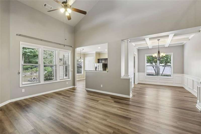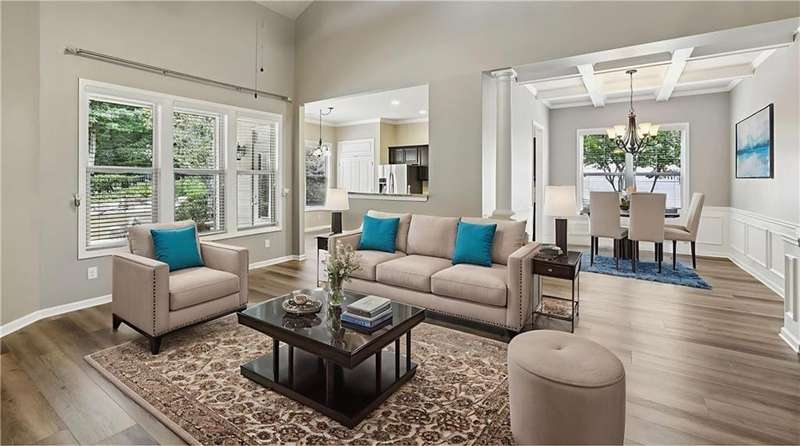 Close and move-in before the Holidays. Master-on-Main. $77K in upgrades and renovations. Lawn maintenance included in HOA. Motivated Seller. Meticulously maintained Craftsman Ranch. This move-in-ready home on a cul-de-sac in the sought-after Kingswood Community of South Forsyth. From the moment you arrive, youll notice the meticulous attention to detailand the stunning walk-out backyard will leave you speechless. Fully fenced for privacy and framed by acres of serene woods, this outdoor oasis features professional landscaping, a spacious patio, and a 14-foot remote-controlled SunSetter awning with integrated LED lighting. An adjacent covered lanaialready wired and ready for a big-screen TVmakes it perfect for fall football, while the stone firepit keeps the good times going on chilly nights. Inside, the two-story Great Room welcomes you with a striking wood-and-iron staircase leading to an oversized loft, full bedroom, and bathroomideal for guests, family, or a home office. Much of the first level has brand-new LVP flooring, and the Great Room is pre-framed for a fireplace so you can personalize it to your style. A coffered-ceiling Dining Room seats up to 12, while the open-concept Kitchen shines with granite countertops, a center island, updated stainless steel appliances (gas range, refrigerator, microwave, and dishwasher), full-size pantry, and a stylish tile backsplash. The Master-on-Main overlooks the wooded backyard, creating a tranquil retreat with a spa-style bath featuring dual sinks, a soaking tub, separate shower, private water closet, and a custom walk-in closet for two. Owners installed a state-of-the-art water filtration and water softening system raising the spa-style to a new level. Two additional bedrooms share a full bath with separate vanities, and guests will appreciate a completely separate powder room. A formal foyer, full-size laundry room, and two-car garage complete the main level. Kingswood is a vibrant, active HOA community offering a clubhouse, pool, tennis/pickleball courts, and year-round social events. All of this is just minutes from GA-400, The Collection at Forsyth, Northside Forsyth Hospital, Cumming City Center, Big Creek Greenway and the highly anticipated new Whole Foods Market.