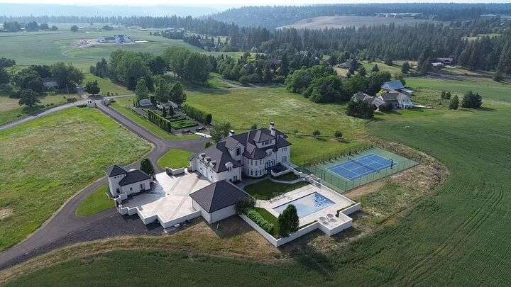 Exquisite French country home on the Palouse with 360-degree views. Elegant but comfortable, well appointed, superior quality, architectural masterpiece. Imported materials, hand painted wallpaper, English cabinetry, intricate trim, marble hard surfaces & floors, & carved fireplaces. Huge windows - allow the sunshine in & views! Primary suite includes a 2-sided fireplace w/ sitting area, immense closet/dressing room w/ slab granite island & a 2nd bathroom. 4 ensuite bedrooms. White & bright French chef's kitchen w/ circular breakfast area. 2 Meile dishwashers, side-by-side subzero w/ 4-freezer drawers, 6-burner Viking range. Great dining room for big family events. Office w/ amazing stained glass historic doors, wood bookcases, & the ceiling is a piece of art! Outside - a 50' X 25' pool, extensive stamped concrete, tennis court, 2-car garage converted to cross fit gym, & formal gardens. Within 2 mins of 7 great (non-chain) bistros & restaurants, gyms, shopping. 15 mins to Downtown Spokane, 18 mins to airport.
