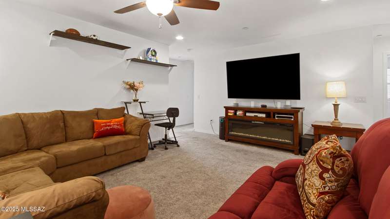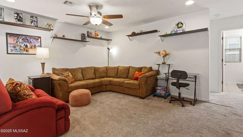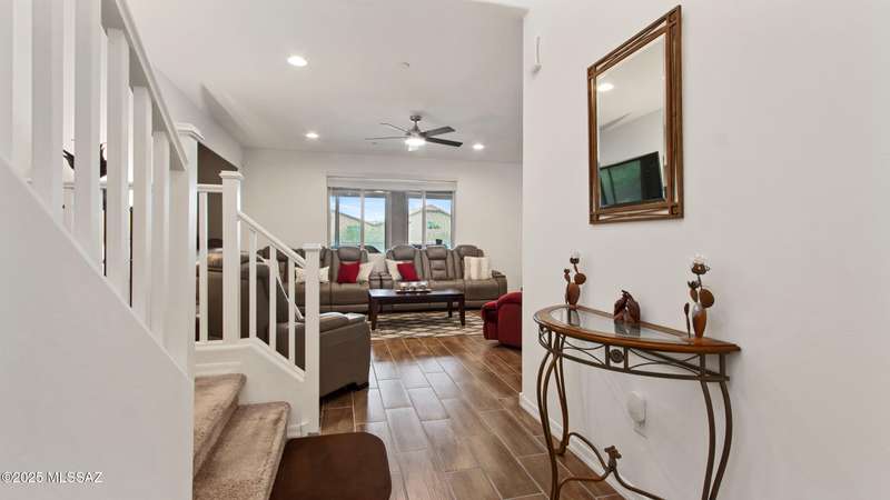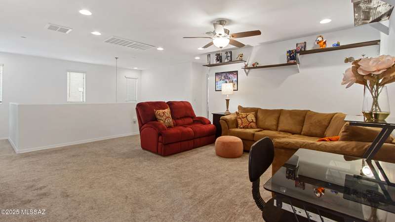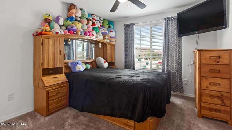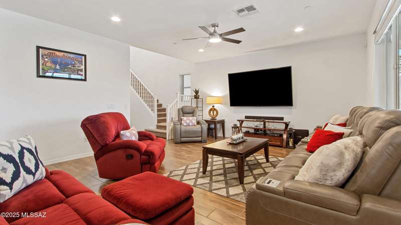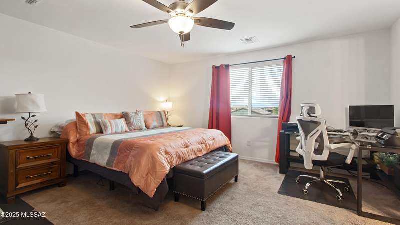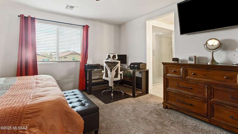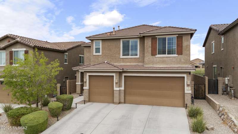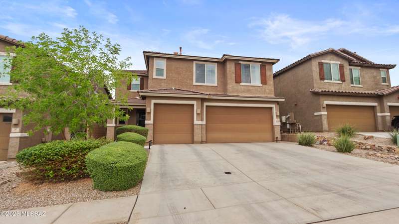 Save money with PAID SOLAR! The main floor offers an entertainer's paradise with a great room & separate dining room overlooking the enclosed patio & backyard. Amazing chef's gourmet kitchen with large center island, extended cabinets, granite countertops, double ovens, vented hood with gas cook top, & stainless-steel appliances. There's a bedroom & full bathroom downstairs-perfect for multi-generational living or guests. The 3-car garage provides expansive space for your vehicles & projects. Second level has loft-flex space surrounded by a split bedroom floorplan. Spacious primary ensuite offers a relaxing retreat-dual sinks, spa shower, & closet suite. Nice sized secondary bedrooms, with 1 bedroom having a large-scale closet. Paid water softener! Security screens on 1st floor windows.