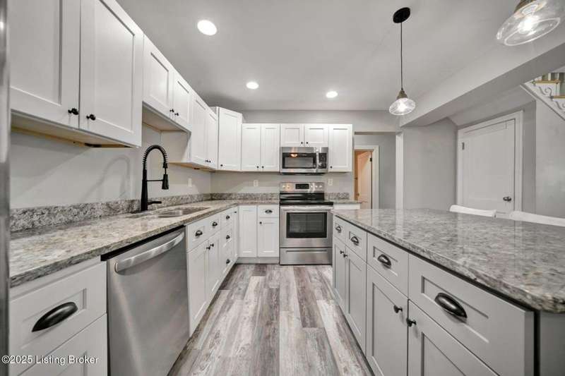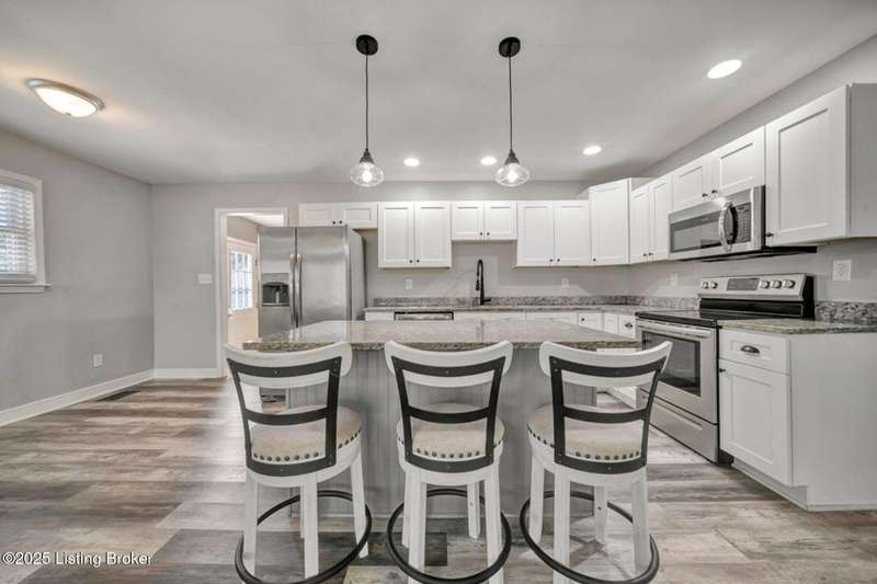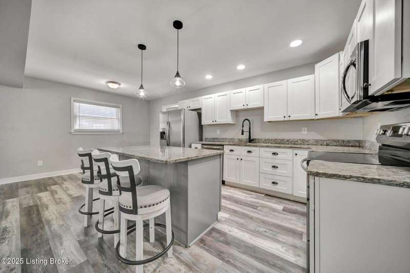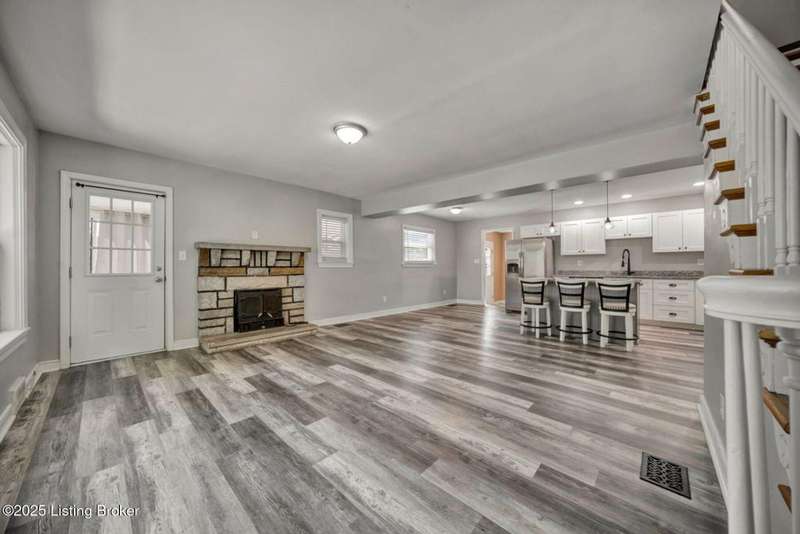 Priced $11,000 below appraisal, this beautifully maintained home offers 4 spacious bedrooms, 2 full bathrooms, and a stylish open floor plan filled with natural light and neutral finishes throughout. The large living room features a striking creek stone fireplace, oversized window, and seamless flow into the eat-in kitchen. Perfect for entertaining, the kitchen boasts abundant white cabinetry, granite countertops, stainless steel appliances, and a large island with breakfast bar seating. Just off the living room, step into the expansive screened-in porch for year-round enjoyment. A convenient mudroom connects to the side entry and driveway. The primary bedroom includes a private en-suite bath, while the second main-floor bedroom and full bath with a walk-in shower offer comfort and style. Upstairs, two additional bedrooms impress with their generous size, cove ceilings, and charming dormer windows. The unfinished full basement provides excellent storage or future expansion opportunities, with walk-out access to the backyard. Outdoor living shines here with a large covered patio, sprawling yard, and an oversized 3-car garage. This home blends space, style, and functionality - don't miss your chance to make it yours!