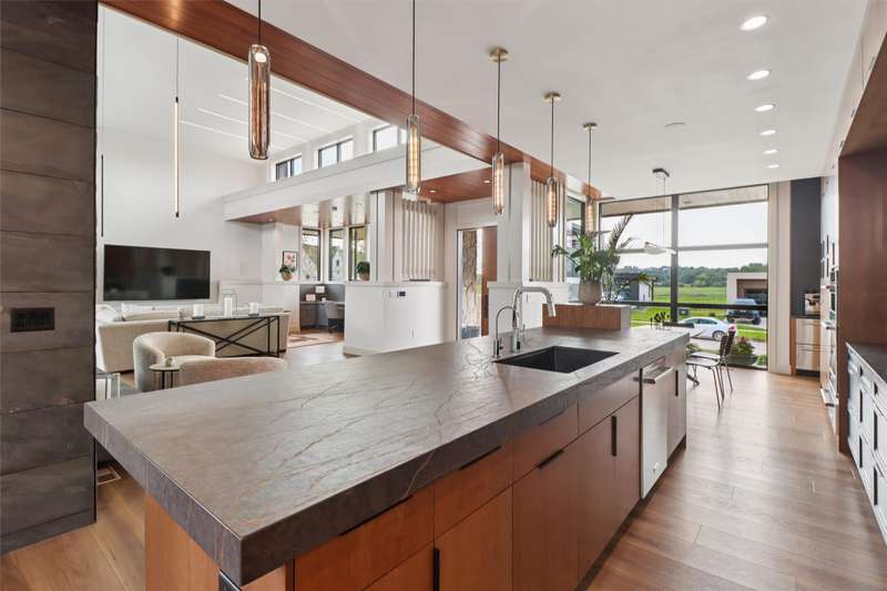 HOME SHOW EXPO HOUSE!!! This gorgeous contemporary style house has it all - 18 ft ceilings, abundance of natural light, revolutionary architecture and so much more. This 5 bedroom 5 bath house is a one of a kind - including 3 bedroom suites with their own spa-like bathrooms. As you walk up youll see the front porch which offers a sense of community and serenity. The large gas fireplace and high ceilings are what really captures this beautiful living room. The property also encompasses a luxury theater room, perfect for relaxing or entertaining. With a full kitchen in the lower level, youll be able to host some elegant parties. It blends convenience and connectedness for this game changing design. As you make your way to the backyard youll see your fully equipped outdoor kitchen with a 16 x 41 custom pool - the perfect place to hang after a long day. This house is built for vision, design and lifestyle - an impression of what central Iowa should be. Every square foot - indoors and out - is crafted for beauty, comfort, and enjoyment. 10 year America's Preferred Structural Warranty on the house.