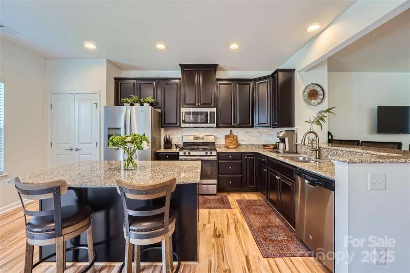 This diligently cared for 3 bedroom 2.5 bathroom townhome in popular Bryant Park includes brand new flooring, a tankless water heater, elevated light fixtures, and updated bathrooms. The main floors open concept is perfect for entertaining and leads out to a patio & a designated 2-car driveway. The spacious kitchen is complete with a gas range, large island, granite countertops, a breakfast bar & pantry. The primary bedroom has an en-suite bathroom with an updated double vanity, new mirrors & light fixture. Additionally, the upper floor has two more bedrooms, another full bathroom with a new vanity & light fixture & a designated laundry room. The HOA covers all exterior lawn maintenance & the amazing location of the neighborhood allows you to be at popular spots like Pizza Baby West, Pinkys, The Coterie Wellness Studio, Not Just Coffee & Uptown in minutes. A Greenway entrance is also just less than a mile away. The washer, dryer & refrigerator convey with an acceptable offer.