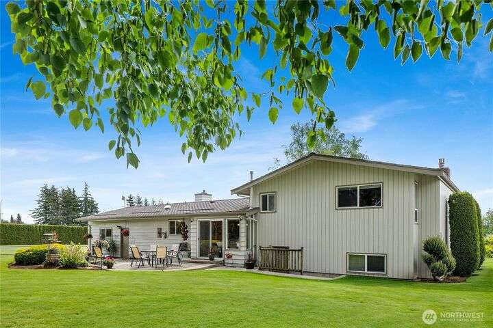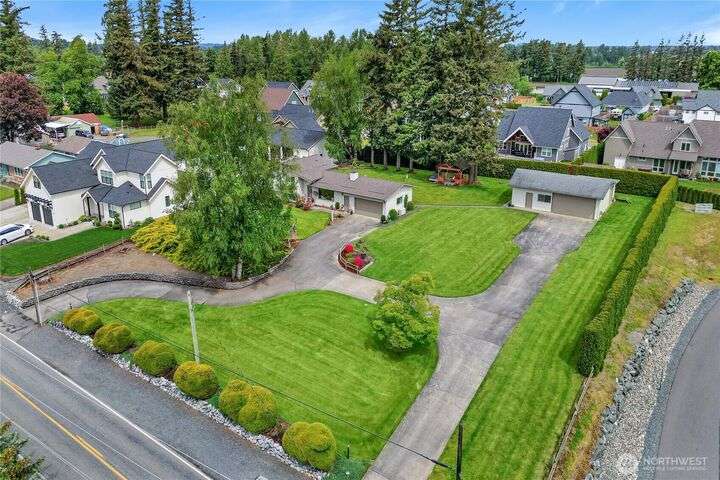 Perched on a hill with partial views of Wiser Lake, this impeccably maintained home sits on two lots with a stunning park-like yard—offering elegance & endless potential! Live in the home while you design your dream estate and build a new custom, convert the shop to an ADU for income or for extended living, or build a spec home. The 2nd lot includes a 26x40 shop + 15x15 addition. 2 water shares included worth $40,000! Upgrades include radiant heated baths, tankless hot water, newer appliances, 50-yr roof, whole house generator & built-in safes. Entertain in the charming gazebo, enjoy the sound system, & savor the peaceful setting. With a Ferndale address, Meridian schools & close proximity to Lynden, this is a rare lifestyle opportunity!
