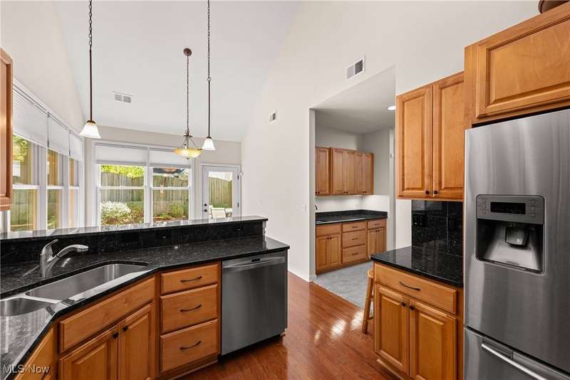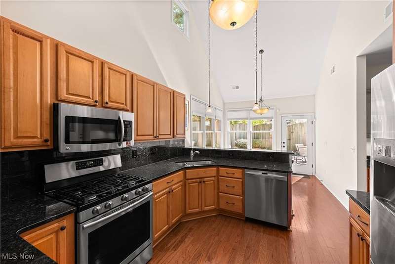 Welcome to this spectacular Courtyards of Severance townhome! This desirable Chopin style home offers vaulted ceilings, loads of natural light, first floor primary suite, private patio & custom gardens. Upon entering this beautiful home you will notice the abundant natural light from walls of windows, the handsome wood floors, gas fireplace with custom wood mantle and vaulted ceilings. Off the living room and dining room is the spacious eat-in-kitchen with granite counters, breakfast bar, maple cabinets, stainless appliances, pantry and access to the private patio. A handsome wet bar with additional maple cabinetry and granite counter space is conveniently adjacent to the kitchen. Turn down the hall and pass the half bath and laundry room to enter the first floor primary suite. This expansive bedroom offers vaulted ceilings, sliders to the patio, 2 walk in closets and a large, bright bathroom with soaking tub, separate shower, granite counters and double sink vanity. The second floor offers 2 bedrooms with vaulted ceilings, another walk in closet and a full bath. The private fenced in backyard with patio is surrounded by quaint gardens and ready for quiet reading or entertainment! Come view this special home?you won't be disappointed!