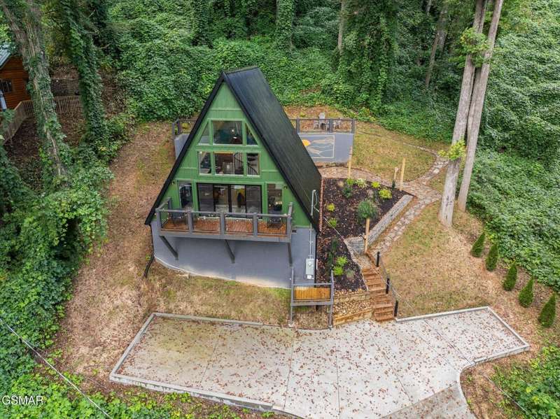 Your Gatlinburg getaway dream cabin has arrived! This 1BR + loft / 1BA adorable A-frame is nestled in a prime location - less than 1mi. to downtown Gatlinburg and only minutes to the Great Smoky Mountains National Park. First impressions are everything, and this one takes the cake with its forest-green exterior, impressive landscaping, and custom outdoor mural. Upon entering, the interior features a warm, earth-toned and stylish space with high ceilings and abundant natural light for guests to enjoy or your private escape. Other design features include a separate/private entrance to the loft, an outdoor firepit space for lounging, and ample, paved parking. Everything about this property is BRAND NEW, from the build itself to the furnishings. It has not yet been utilized as a short-term rental; however, it has already passed inspections for overnight renting by the fire marshal. Consider this your turnkey, investment wish fulfilled! Don't sit back on this one; call to schedule your showing today.