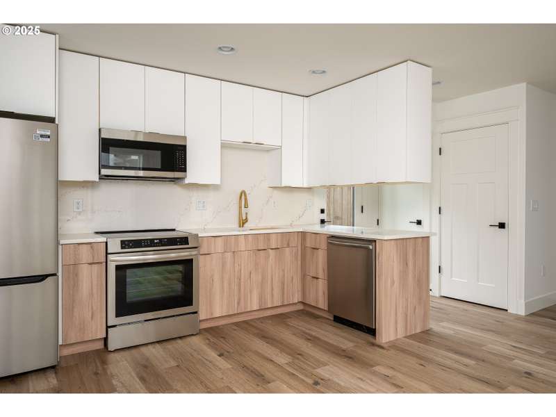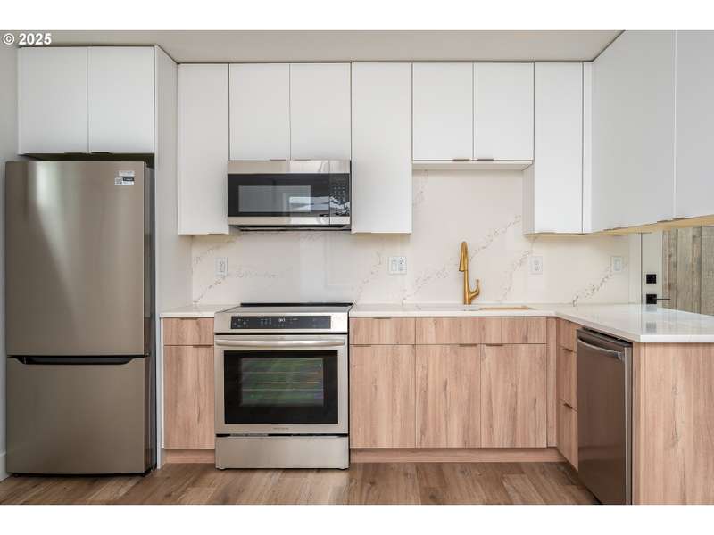 Step into style with this brand-new detached condo, offering 732 square feet of beautifully finished living space in a boutique 8-home community. Perfectly sized and thoughtfully designed, this home is big on character and quality. Highlights Include: Airy, open floor plan with a seamless living + kitchen space...Gorgeous natural and white two-toned cabinetry...Upscale gold fixtures and hardware for a warm, refined touch...Sleek granite countertops and stainless steel appliances...Durable luxury vinyl plank flooring throughout...Convenient main-level half bath... Upstairs: a bright primary suite, full bath, and a second bedroom... Private fenced patio space—ideal for relaxing or entertaining...Includes washer, dryer, and fridge... Every home in this one-of-a-kind collection has its own unique design—crafted with intention and built to stand out. ALSO!!! First 6 units to sell come with a parking spot at no aditional charge... EV Charging station on site.