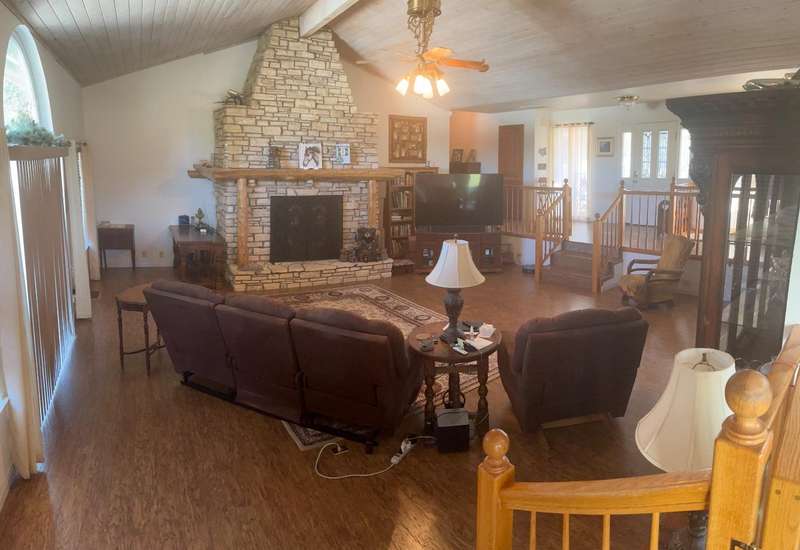 TOTAL price adjustment of $100,000!! This estate includes over 8 1/2 acres of land in home and horse property including pasture, arena, two horse stalls, and tack room (currently a chicken coop). There is also an auto shop with car lift, an observatory, a four car garage, paved driveways, insulated storage sheds, a generator for power outages, owned solar system, and an additional bedroom (currently a hobby room) and bath with shower. This additional room and bath in the garage level makes the total square footage over 3,200. This differs from the tax records though the third bath was on the original floor plans. If you are looking for a hidden gem and security, THIS IS IT! The living room has a mountain lodge feel with a large rock fireplace. Natural woods used throughout and lots of natural light. The majority of the property can be surveyed from the extensive porches. Seller will include KUBOTA tractor with acceptable offer.