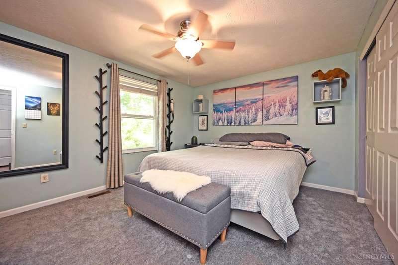 Discover your private escape in Reading! This well-maintained home is a true retreat, nestled in the woods at the end of a private drive. Inside, you'll find an open kitchen with stainless steel appliances and a cozy lower level featuring new LVT flooring and a wood-burning fireplace. The primary suite with its attached full bath adds to the convenience of this lovely space. The highlight is the outdoor oasis, complete with a two-story deck, a private hot tub, and a fully-fenced backyard overlooking the serene woods. Built-in two-car garage with direct entry to the lower level. A detached shed with power offers a great workspace, and the location is unbeatable - just 5 minutes from I-71/75 and 8 minutes from Summit Park. New roof, gutters, and electric panel. A must-see!