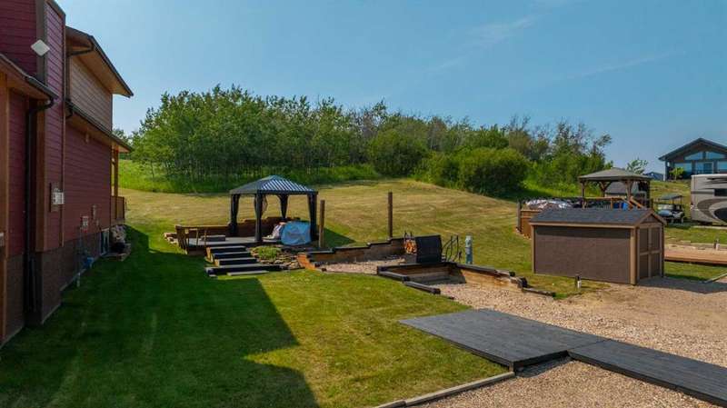 Escape the hustle of city life and enjoy year-round living at the beautiful Whispering Pines Golf & Country Resort. This property is situated on stunning Pine Lake, offering the perfect setting for relaxation, recreation, and creating lasting memories. This lot features an exceptionally clean and well-maintained park model unit, ideal for those looking to downsize, enjoy a peaceful retreat, or entertain family and friends. Just unpack and start enjoying resort living. This fully winterized park model unit features an open-concept layout with vaulted ceilings and floor-to-ceiling windows that flood the space with natural light. The spacious living area includes an electric fireplace for cozy evenings, while the modern kitchen is equipped with a gas stove, fridge, microwave, down the hall, you have a stacked washer/dryer. You will be very comfortable with 2 bedrooms, the primary bedroom has beautiful built-ins for storage. Also enjoy a spacious 4 piece bath. Step outside onto the south-facing composite deck, partially covered for all-weather enjoyment. Patio pavers along the side and back provide extended outdoor living space, perfect for morning coffee or enjoying a night under the stars. A 12x9 insulated shed is included for extra storage. Never worry about parking for your boat or golf cart with a 4 car concrete driveway. As a resident of the Whispering Pines gated community, you’ll enjoy access to a wide array of resort-style amenities designed for all ages and lifestyles. Highlights include a scenic 18-hole golf course, an indoor pool and hot tub, a full-service restaurant and bar, sports courts, a playground, a 55-slip marina, and a private beach. Your monthly condo fees provide exceptional value, covering services such as water and sewer, snow removal, professional property management, reserve fund contributions, and full access to all shared amenities, as well as year-round grounds maintenance. Close enough for convenience, far enough for peace just 90 mins from Calgary and 30 mins from Red Deer and Innisfail. Live where others vacation, make Whispering Pines Golf & Country Club Resort your new home.