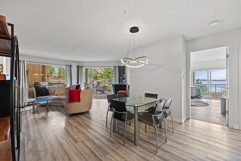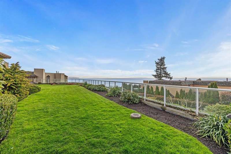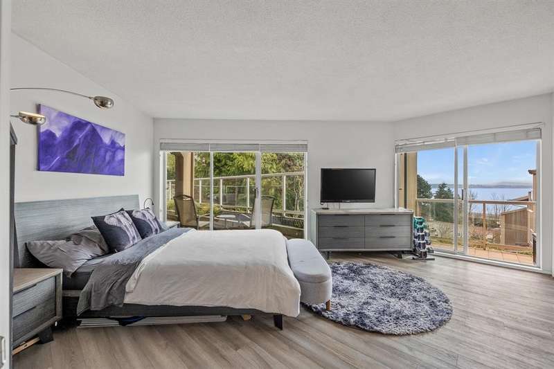 Welcome to your coastal retreat in the heart of White Rock! This fully renovated corner unit with 2-bed, 2 full bath offers the perfect blend of luxury and peace. Enjoy the tranquility of a 500 square foot ocean view garden level deck – perfect for entertaining and for gardeners. This private unit by Bosa features southern and western ocean views, floor-to-ceiling windows that bathe the home in light, while a cozy gas fireplace adds warmth and charm. Renovated kitchen, complete with quartz countertops and a deep granite sink with touch faucet, along with new flooring throughout. Enjoy amenities like a sparkling outdoor pool and soothing hot tub with ocean view. Just a 2-minute stroll to restaurants and the beach. Well-run strata.