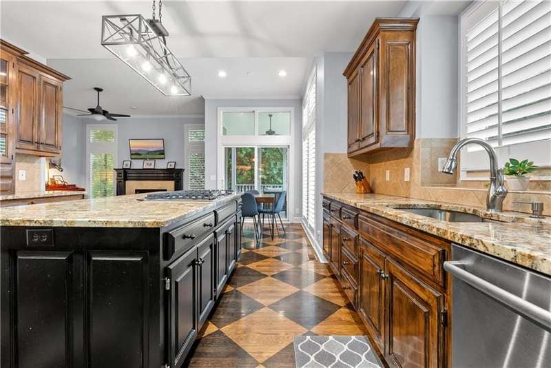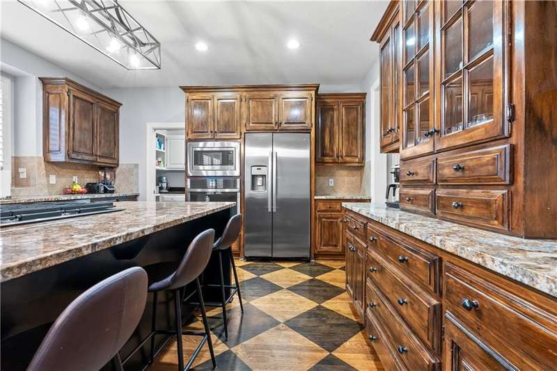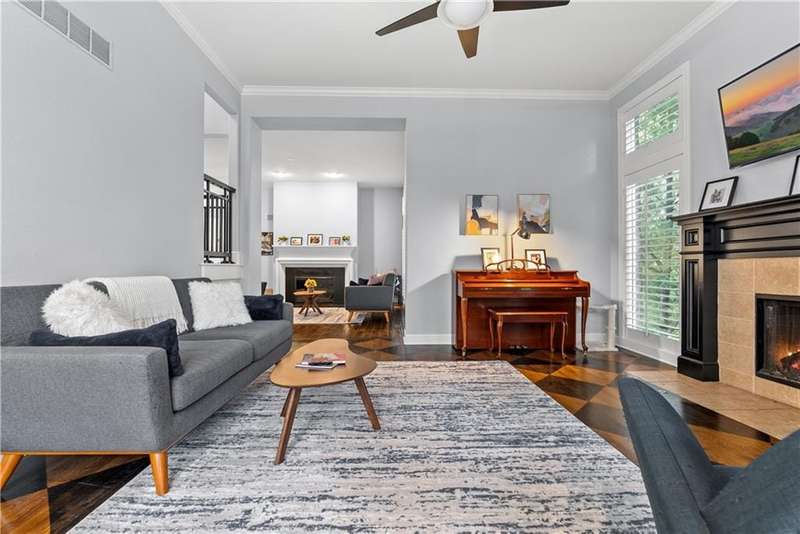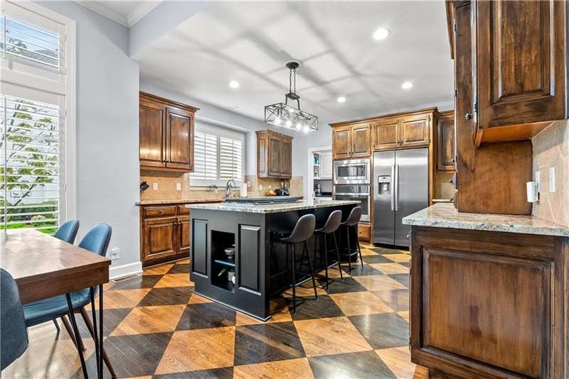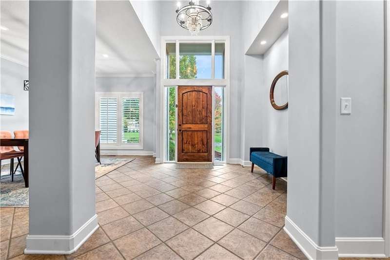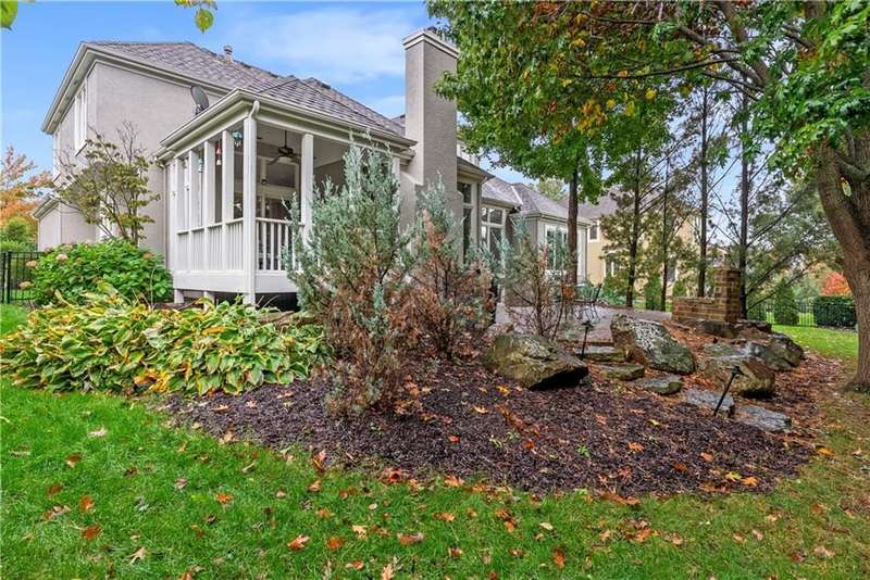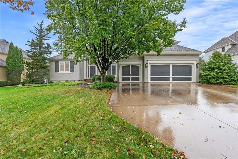 This open and airy 1.5-story home offers over 4,800 sq. ft. of living space in the highly sought-after Pavilions of Leawood. Move-in ready with newer interior and exterior paint, newer carpet throughout, and recent mechanical updatesincluding a new furnace, A/C, and water heater! The inviting great room features a wall of windows, a gas fireplace, and flows seamlessly into the kitchen with granite countertops, gas cooktop, stainless steel appliances, island/breakfast bar, and pantry. A cozy hearth room with fireplace adjoins the breakfast area, which opens to a covered deck and paver patio with an outdoor fireplaceperfect for dining and entertaining in the level, fenced backyard surrounded by numerous trees for privacy. The spacious primary suite boasts a tray ceiling, large walk-in closet, and a spa-like bath with whirlpool tub, tile shower, and double vanity. The main level also includes a formal dining room, laundry room, and half bath. Upstairs, an open loft/flex area is surrounded by three generously sized bedrooms, each with a walk-in closet. Two bedrooms share a Jack-and-Jill bath, while the third enjoys a private ensuite. The finished, walk-up walk out lower level offers even more living space, including a family room, fifth bedroom, full bath, wet bar with granite counters, game/play area, exercise room, and ample storage. Enjoy an unbeatable location within the award-winning Blue Valley School District, with neighborhood amenities such as a community pool, and just minutes from shopping, dining, parks, and trails.
