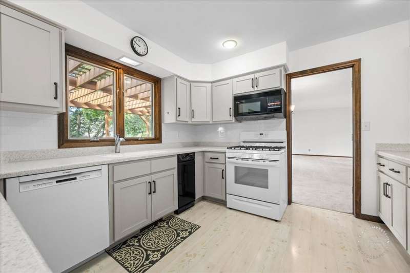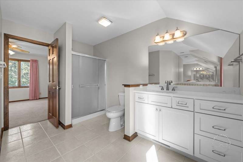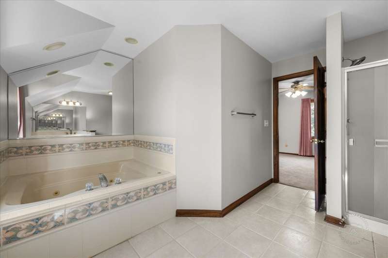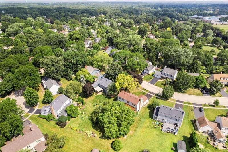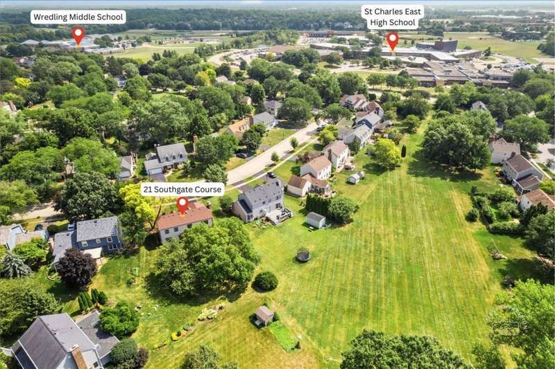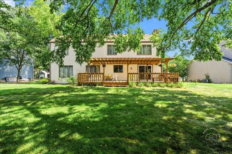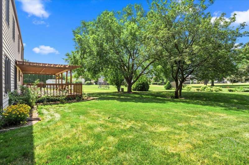Classic East Side St. Charles home situated on a mature, landscaped lot backing to open space. Prime location just minutes from highly rated St. Charles East High School and Wredling Middle School. Updates include: Furnace & A/C (2020), Roof (2021), Driveway (2020), Front walkway (2021), new carpet upstairs (2024), many newer windows, re-faced kitchen cabinetry, newer vanities and countertops in powder room and primary suite, and fresh paint in several rooms (2025). Open living and dining room perfect for entertaining. Updated kitchen opens to family room with raised-hearth brick fireplace and doors to pergola-covered deck. Gorgeous updated powder room. Primary suite offers new carpet, walk-in closet, ceiling fan, and vaulted bath with newer white vanity, countertop, faucets, mirror, whirlpool, and shower. Three additional bedrooms share hall bath with double sinks and tub/shower. Finished lower level features a bright and spacious recreation room plus office/playroom. Private backyard and easy access to schools, shopping, and more.