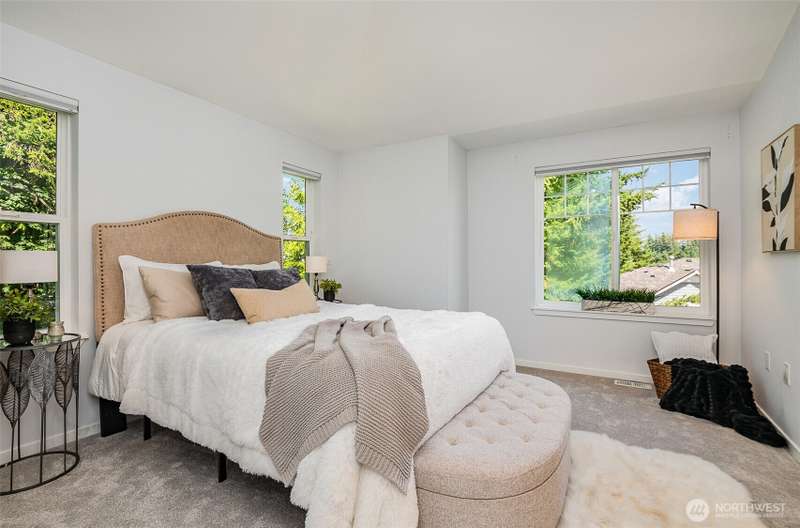 Welcome to this sun-soaked, 2030 SF end-unit townhome in desirable Lakemont. Featuring new roof, water heater, furnace, & carpets, it's ready for its next owner. Upper level features loft area, 2 spacious bedrooms, including luxurious primary w/ vaulted ceilings, ensuite bath & walk-in closet. Spacious, main floor living area with 1/2 bath is perfect for entertaining, leading into a modern kitchen with stainless appliances. Nestled in a desirable area, you're minutes away from amenities, shopping, parks and top employers. Enjoy a 2 car garage & unbeatable access to major freeways for an easy commute. Don’t miss this move-in ready, pet-friendly home in Issaquah School District. No rental cap, pre-inspected & home warranty for peace of mind!