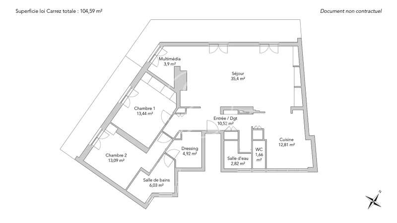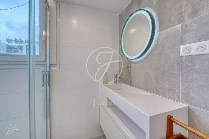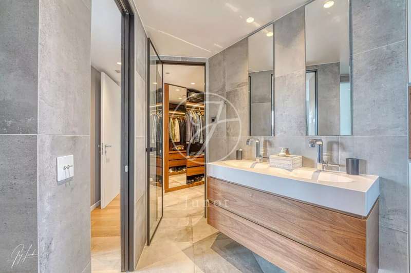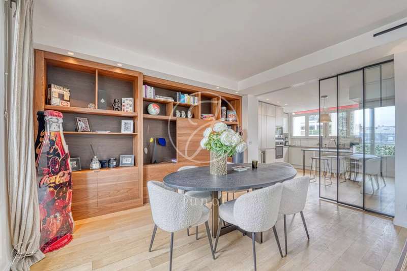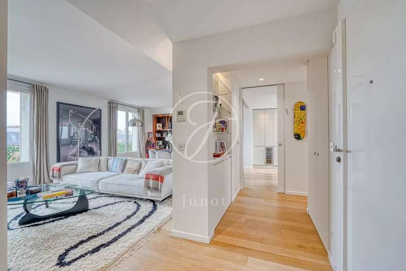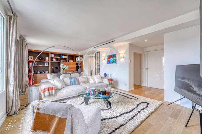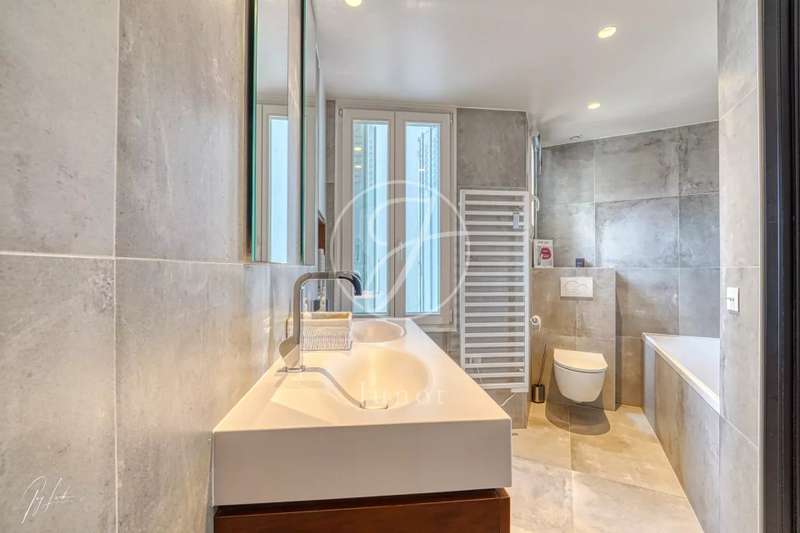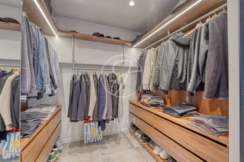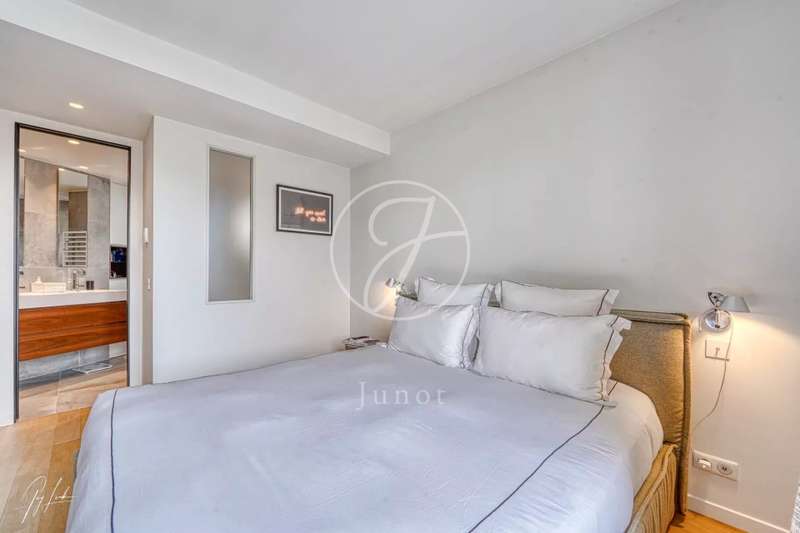 Ideally located on the prestigious Avenue Montaigne. On the seventh and last floor, with elevator, of a luxury building with guarded and secure access. This 104.59sqm loi Carrez apartment has been entirely renovated by an architect. Air-conditioned, it comprises an entrance hall, a living-dining room opening onto a large balcony, a master suite with dressing room and bathroom, a second bedroom, a shower room and a guest toilet. A cellar completes this rare property. A double garage is available at extra cost.