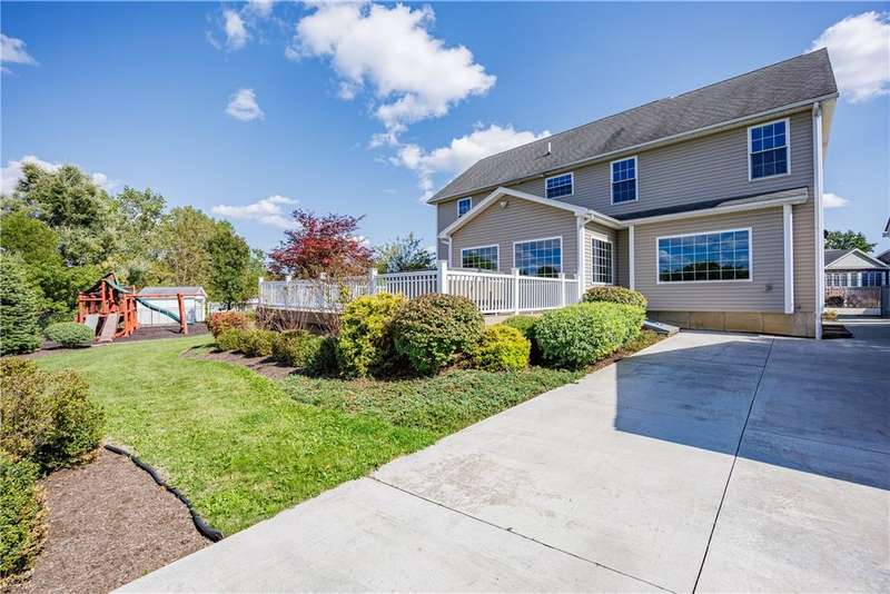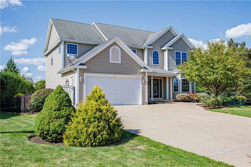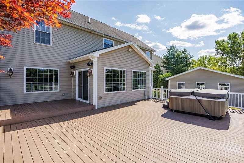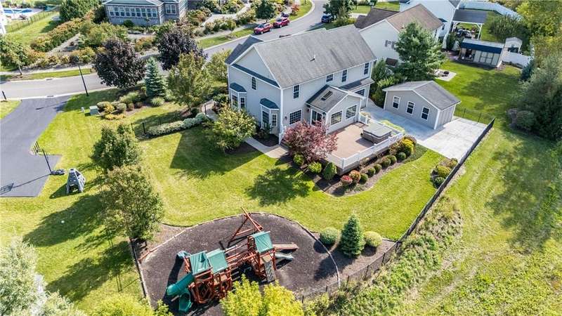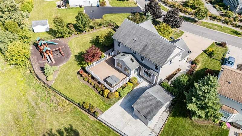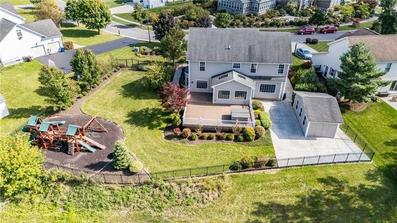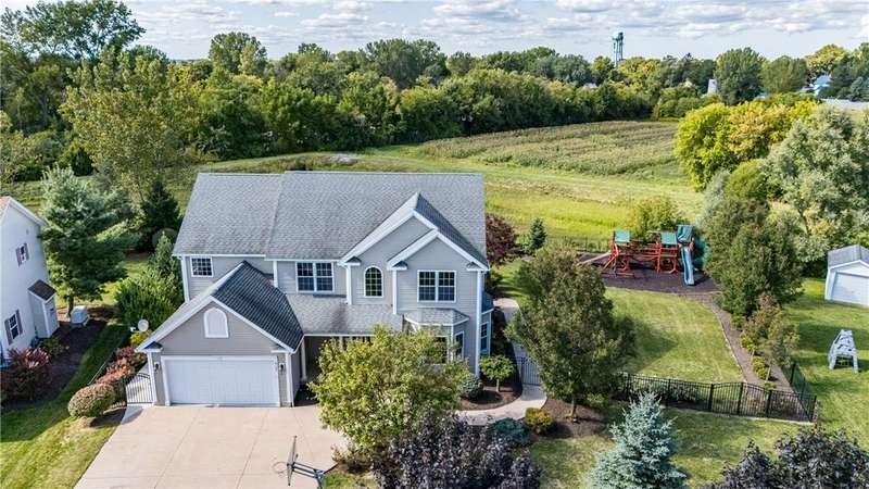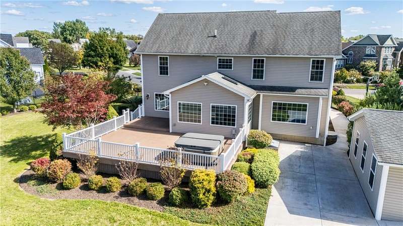 RARELY AVAILABLE IN THE ROYAL SPRINGS NEIGHBORHOOD. ***THIS ONE IS A 10+++!!!!!!**PRISTINE, CUSTOM BUILT BEAUTY WITH EVERY IMAGINABLE UPGRADE!!!** GLEAMING HARDWOODS THROUGHOUT**DESIGNER CROWN MOLDINGS AND CASINGS**DELUXE GOURMET CHEF'S KITCHEN WITH STAINLESS APPLIANCES,GRANITE COUNTERTOPS, AND LARGE PENINSULA ISLAND WITH BREAKFAST BAR AND SUNNY BRIGHT BREAKFAST ROOM!!!*NEW FURNACE AND CENTRAL AIR 2024**CENTRAL VAC**2ND FLOOR LAUNDRY INCLUDES WASHER AND DRYER**TWO STORY FOYER ENSURES A GRAND ENTRY.... SPACIOUS FAMILY ROOM PLUS ADDITIONAL "FLEX" SPACE FOR LIVING ROOM OR OFFICE** UPSTAIRS ARE FOUR BEDROOMS AND TWO FULL BATHS INCLUDING THE STUNNING, VAULTED PRIMARY ENSUITE WITH JETTED TUB, SEPARATE SHOWER AND HUGE WALK IN CLOSET. FINISHED LOWER LEVEL WITH NEW CARPET, HALF BATH AND BELKO DOORS. EXPANSIVE TREX DECK WITH HOT TUB!!! SEPARATE OUTBUILDING IS TRULY THE BEST "MAN CAVE" GOING!!!! PERECT SPACE TO STORE YOUR TOYS OR FINISH IT OFF FOR A SEPARATE ROOM THAT COULD BE THE PERFECT "GETAWAY"TO ENJOY A BEER AND WATCH THE BUFFALO BILLS GAMES!! GATED FENCED IN YARD WITH PLAY-SET, BEAUTIFULLY PRIVATE AND PROFESSIONALLY LANDSCAPED GROUNDS & SETTING. PICTURE PERFECT VIEWS THAT ARE TOTALLY P-R-I-V-A-T-E !!!! LESS THAN 17 MINUTES TO ROCHESTER