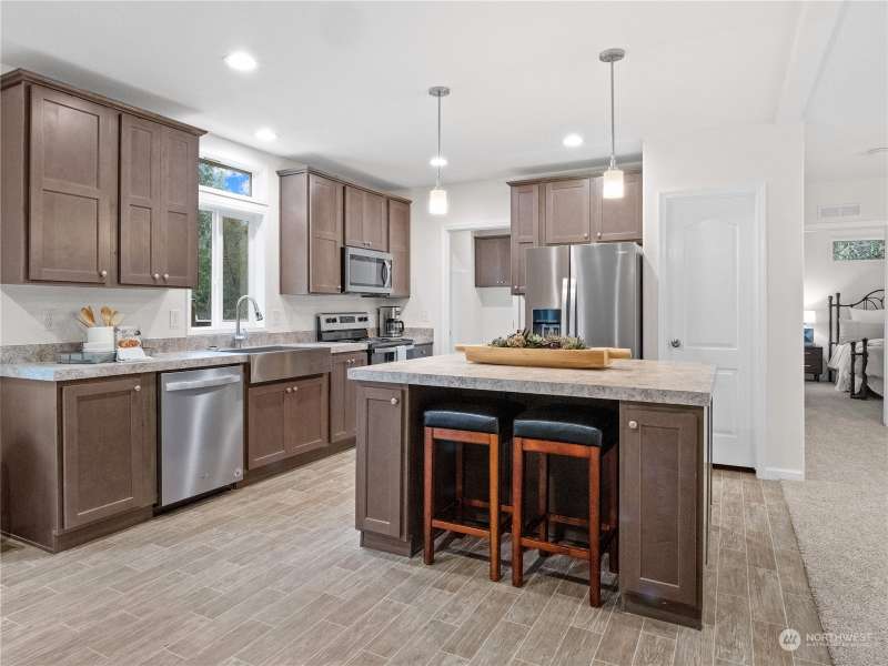 Warm and inviting BRAND NEW 3 bed, 2 bath energy-efficient home in desirable Timberlake Community ~ access to two lakes, multiple parks, and community center. Backed up to green belt so you can enjoy your morning coffee overlooking nature with the resident deer stopping by to say hi. Neutral and fresh color palette, spacious kitchen with SS appliances, solid wood cabinets throughout, open layout, primary bedroom with en suite, and ample sized shed for additional storage. 50-year warranty Genstone insulated skirting with cedar backing. Quiet cul-de-sac for peaceful living. Seller open to a rent to own option or seller financing. Call for details.