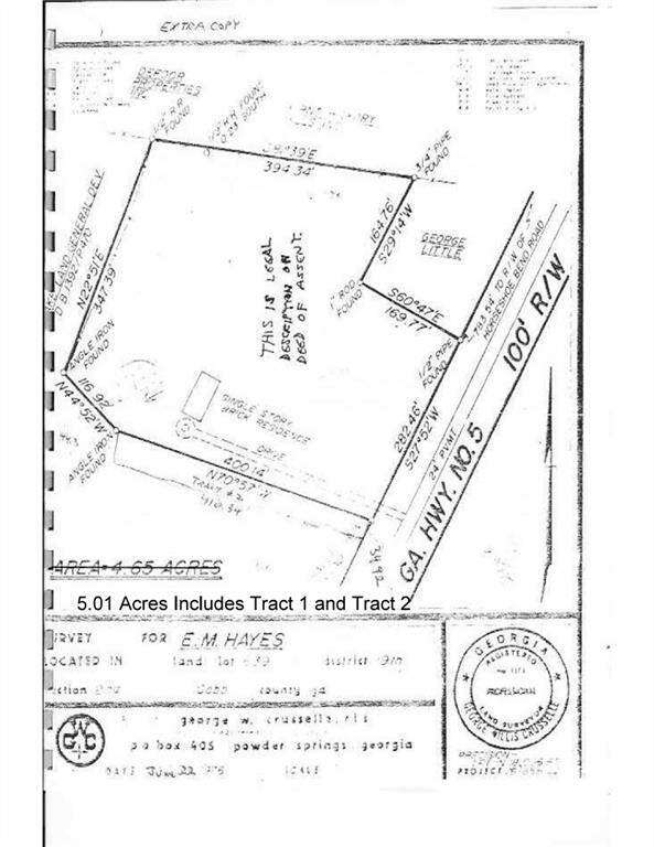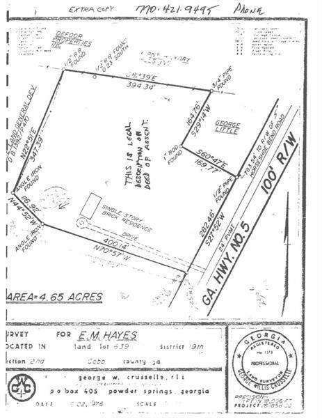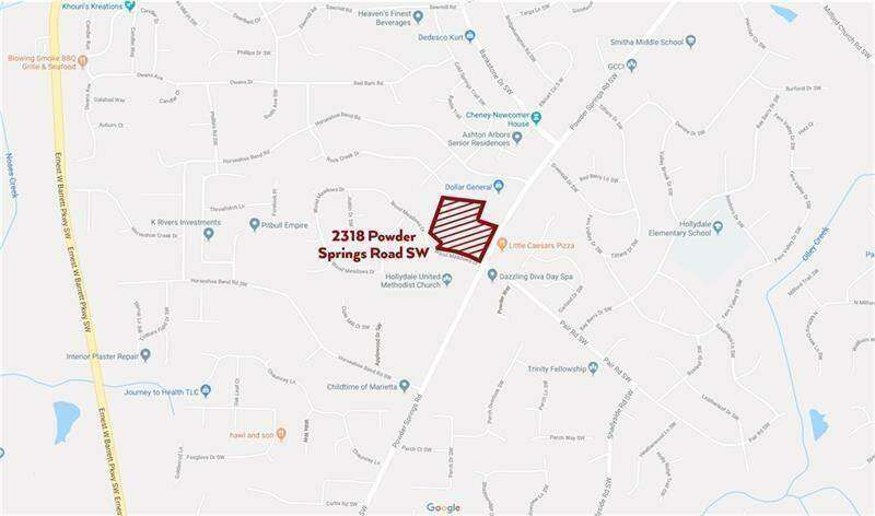 GREAT CORNER 5 ACRE LOT AT STOPLIGHT INTERSECTION ON HEAVILY TRAVELED ROAD. EASY ACCESS TO POWDER SPRINGS ROAD AND WOOD MEADOWS DRIVE. GREAT POTENTIAL FOR COMMERCIAL AND LOWER DENSITY RESIDENTIAL / RA-4 - RA-6, FST.