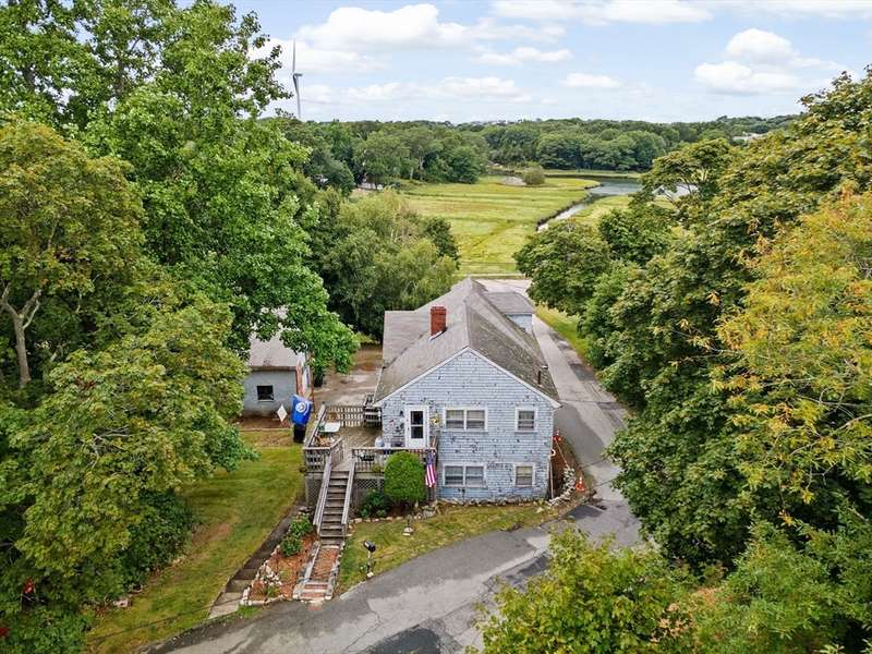 Nestled on 0.58 acres in a sought-after Hingham location, this rare property offers sweeping views of the picturesque Weir River and presents a unique opportunity to renovate the existing home or build your dream residence. The current four-bedroom, two-bathroom home features a welcoming front porch and a spacious rear deck—perfect for relaxing and enjoying the tranquil scenery. The expansive lot includes a large garage with tremendous potential—ideal for a workshop, art studio, home office, or even conversion into an in-law suite. There's also ample parking and a remarkable sense of privacy, making it a true retreat. Whether you're looking to create a custom estate or reimagine the existing structure, this property offers flexibility and endless possibilities. Ideally located just minutes from the MBTA ferry, commuter rail, Hingham Shipyard, pristine local beaches, and vibrant downtown Hingham, this property combines convenience, natural beauty, and unmatched potential.