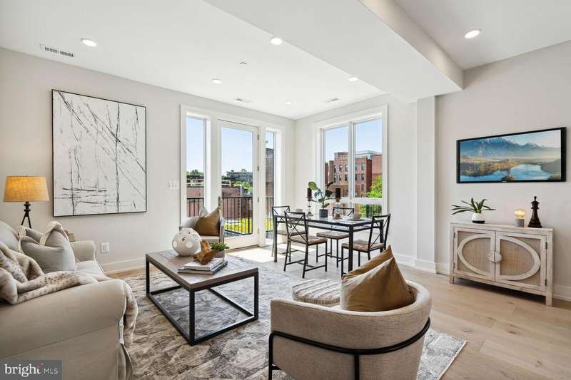 BUYER GOT COLD FEET! a VERY CLEAN INSPECTION THAT WE ARE HAPPY TO PASS ALONG! Truly stunning brand new 1200 sq ft 2br+den/2ba penthouse unit in a handsome brick semi-detached townhouse with awesome curb appeal on a gorgeous tree lined street! A perfect blend of old and new with a exposed brick wall entry, skylight, 3 exposures providing insane light, 6 inch wide plank flooring, a classy house sized gourmet kitchen, custom tiled baths, and a wonderful private roofdeck! Low condo fee !!!!! This project boasts green roofs on all of the buildings, solar power to cover most if not all of the common lighting & EV charging, eye-catching landscaped grounds, and an open central courtyard with environmentally conscious water retention wells making it a sustainable and eco-friendly living space. I like to call it Melrose Place on Lanier! taxes are approx & builder's contract required. Walk to all Adams Morgan has to offer with an abundance of shops, restaurants, 2 grocery stores, great night clubs, and so much more. 10-15 min walk to Woodley Metro and access into Rock Creek Park.