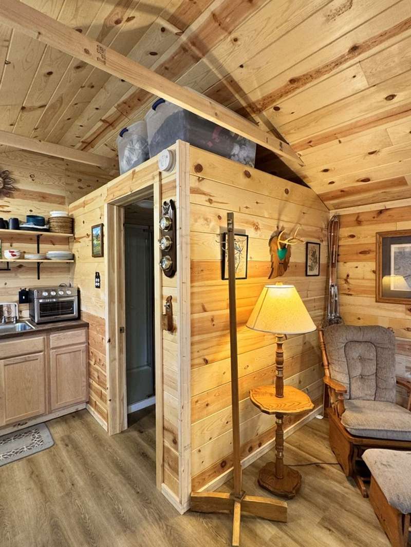 This camp/retreat has the Walcott Brook running through this 3.31 acres of land. Spend your days simply relaxing by the stream soaking in the beauty of your private retreat. This is more than just a camp, it's a gateway to a lifetime of unforgettable cherished memories to hold from family time, hunting and recreation. This has electric heat plus a mini split to include the central air. Surveyed. Underground electric cable to the camp with 100 amp. service. All light are LED and dimmer switches. All lights switch plates are metal and have different features on each one. The bathroom fan is programable to set to run anytime to circular air in the camp. The well pump is in the heated insulated adjoining room. Public sewer. Many apple trees to bring in the wildlife. Level lawn. Driveway has heavy matting under stone. Across the perimeter under the camp has geo-grid matting. Both #3 then #2 stone, to hold 2000 lbs sq. ft. Perfect for an Airbnb. Very well-built building. Secluded. 14' x 32'