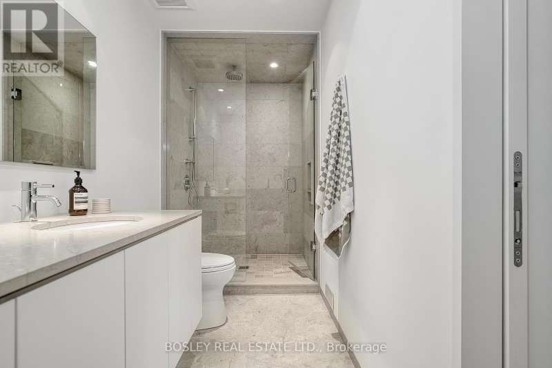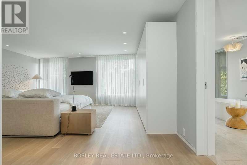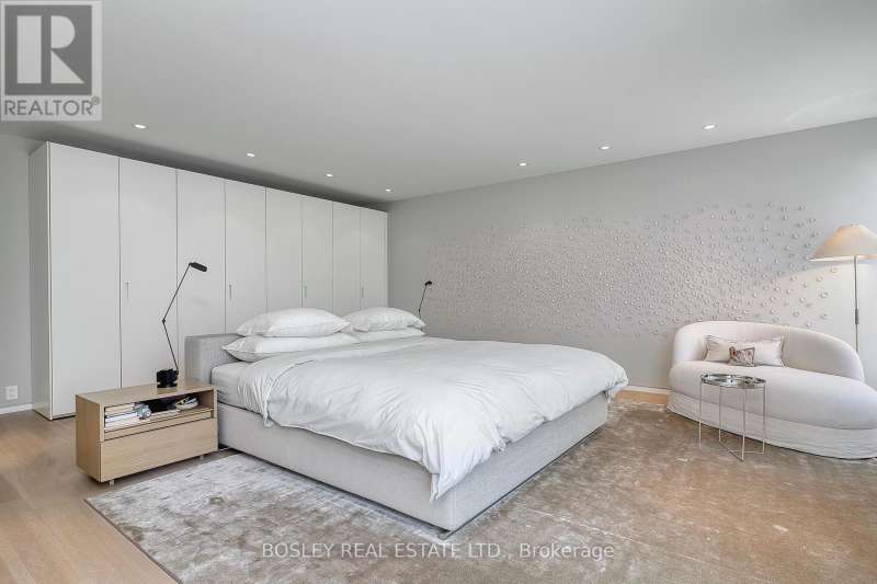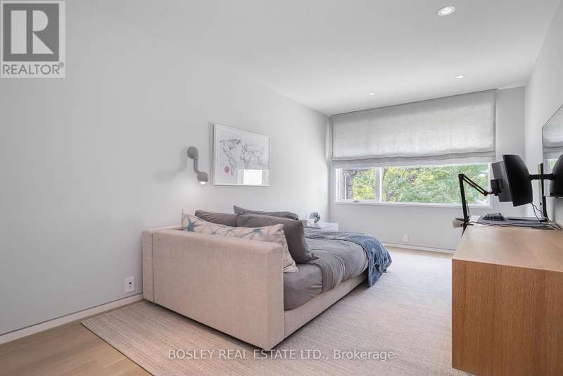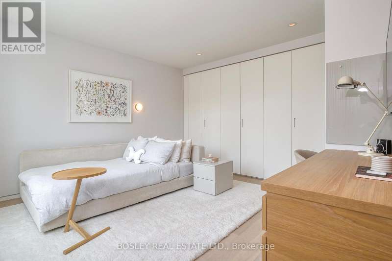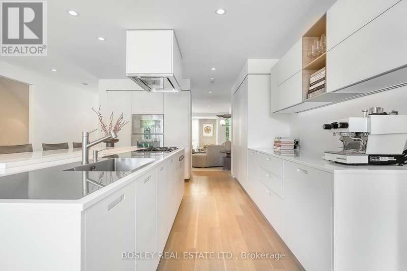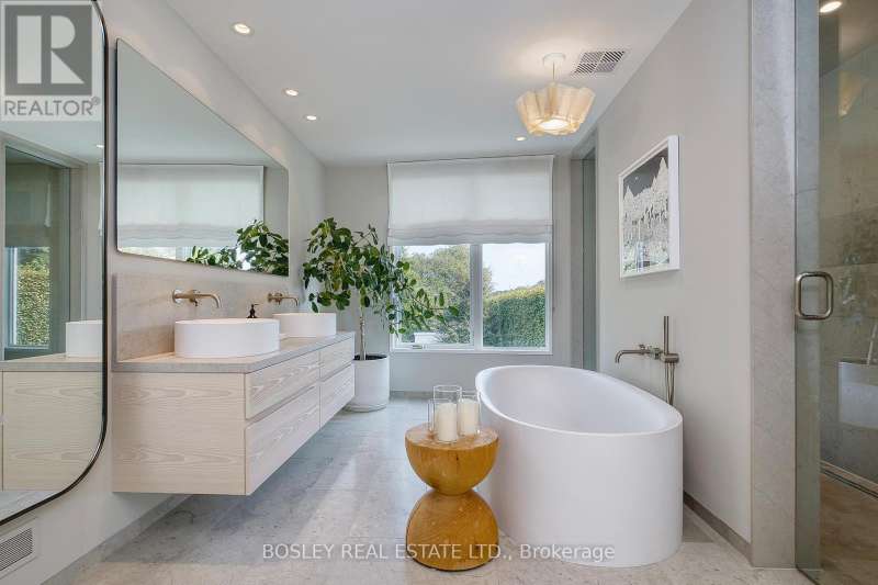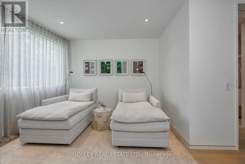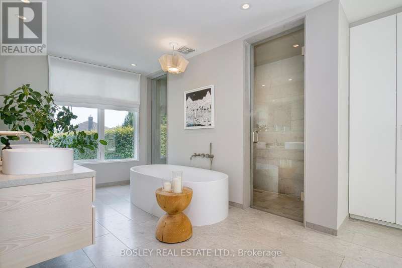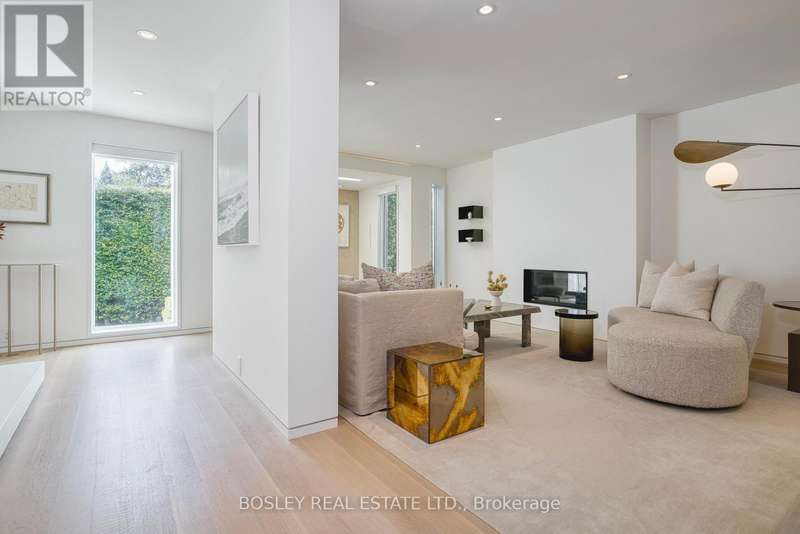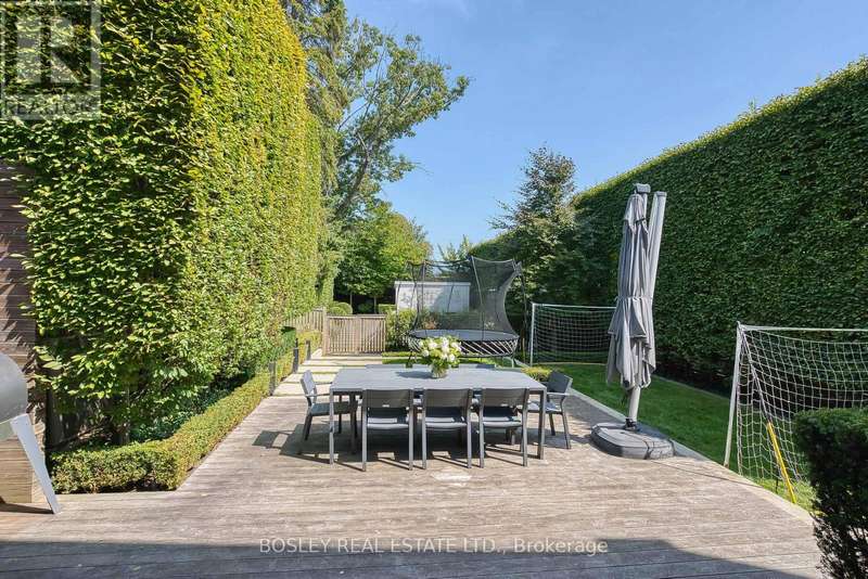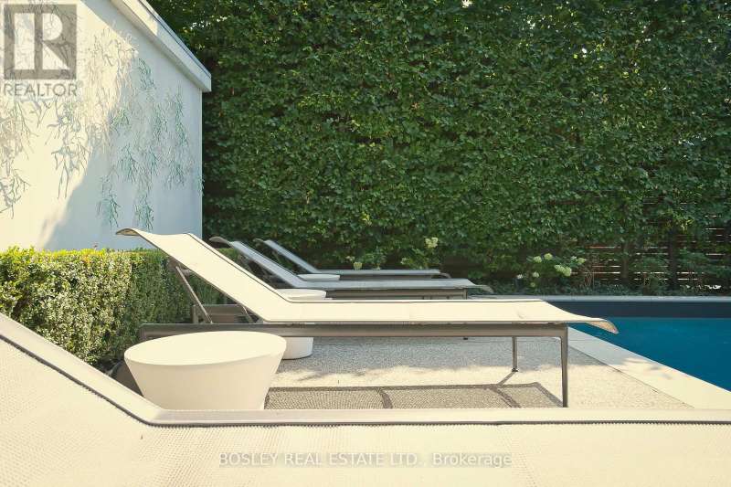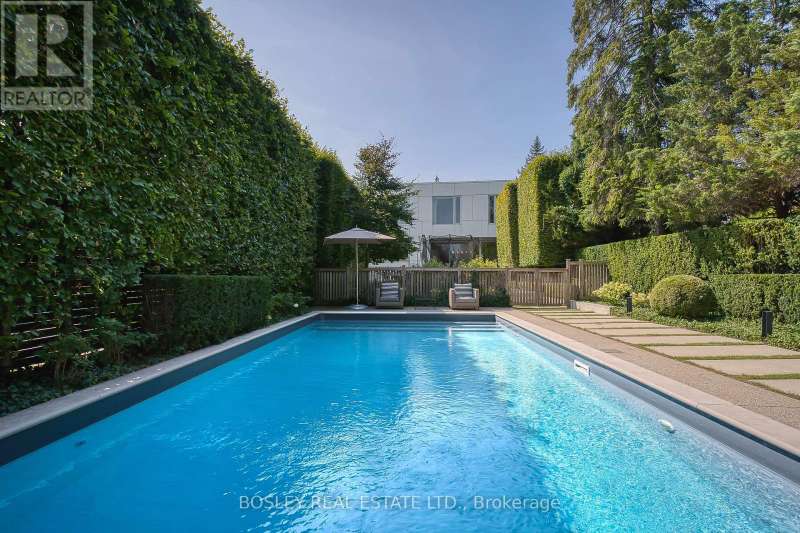 This exceptional custom residence, designed by acclaimed architect Cindy Rendely and decorated by Ashley Botten, blends modern architecture with serene, sophisticated living. Surrounded by soaring beech trees for complete privacy, the detached home features clean lines, a calming palette, and seamless indoor-outdoor flow. The welcoming foyer with built-in storage and refined craftmanship sets the tone. White oak floors lead to a tranquil living room with a sleek gas fireplace, while a discreet powder room finished with lime wash walls shows the attention to detail. The cozy family/TV room overlooks the landscaped backyard, and the chef's kitchen is the heart of the home, boasting Poliform cabinetry, Gaggenau appliances, a generous island, and an open dining space. Expansive sliding doors open to a remarkable outdoor retreat. Designed by Coivic, the backyard is an entertainer's dream: a 32-foot swimming pool, stylish lounge deck, outdoor dining, lush lawn, and a fully equipped pool house. A built-in two-car garage with EV charger and private drive accommodate four vehicles with direct interior access. Upstairs, four bedrooms each feature ensuite baths with heated floors and custom custom closets. The spacious primary suite offers: two walls of closets, a spa-like ensuite with steam shower, soaker tub, and double vanity-pure indulgence. Technology enhances comfort with room-by-room lighting and window control. The lower level features heated polished concrete floors, a large recreation room, guest/nanny suite, and a fully equipped gym with mirrored walls, barre, and space for equipment. Perfectly located near top schools and major transit, this thoughtfully curated home in the heart of Caribou Park offers a rare opportunity for modern luxury.