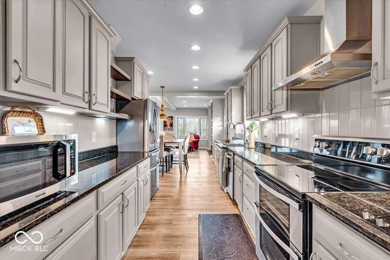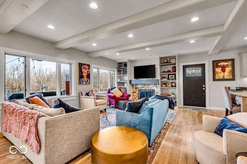 Nestled along the serene White River, this property offers five bedrooms & three full baths, including the In-law quarters or income producing suite on the lower level. Kitchen is complete with beautiful soft close cabinetry, granite countertops, backsplash & stainless steel appliances. Main level Family Room has breathtaking views of the river & a wood-burning fireplace. The 3rd bedroom & full bath, a bar closet, along with a mudroom just off the attached garage round out this level. The primary suite has so much natural daylight, beautiful views of the river & its own balcony. The upper-level bath has a soaking tub, large tiled shower & has the feel of a spa. The lower-level suite with an entrance from the exterior or interior. With two beds & full bath, kitchenette, laundry, cozy living room, & dining room space, this is perfect for traveling nurses, in-laws, or income producing. The back exterior is an entertainer's dream come true. Complete with deck, grilling area, gazebo & screened in patio & hot tub pad complete with electrical. Perfect for hosting large parties. This home has all of the modern conveniences, even solar panels. This property is a must see!
