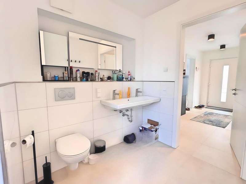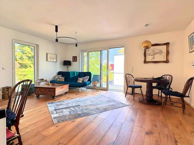 This bright, high-quality 3-room apartment boasts a well thought-out room concept, timeless materials, modern comfort and a separate entrance. It is ideal for couples, small families or discerning singles. Upon entering the apartment, you are greeted by a spacious hallway from which all rooms are easily accessible. The living and dining area is open and flooded with light. Fine oak floorboards lend the living rooms and bedrooms a warm yet elegant atmosphere. In the kitchen, bathroom and guest WC, large-format tiles in a modern design have been laid, which are both easy to clean and aesthetically pleasing. The modern, high-quality fitted kitchen is fully equipped and leaves nothing to be desired. The bright daylight bathroom has a floor-level shower, a bathtub and a large double washbasin with two integrated fittings, making the morning routine particularly convenient for couples or families. There is also a separate guest WC. Modern electric shutters on all windows provide additional comfort, privacy and optimum darkening. The living comfort is complemented by the individual room control of the underfloor heating, which enables individual temperature control in each room. A practical storage room within the apartment offers connections for a washing machine and dryer. Further storage facilities can be found in the associated cellar room. The sunny balcony invites you to linger - whether at breakfast or in the evening with a view of the greenery. An intercom system with integrated camera and video surveillance in the entrance area offer added security. This attractive offer is rounded off by two permanently allocated underground parking spaces, which provide convenient parking regardless of the weather. Arrange a viewing appointment now to see the many advantages of this property for yourself and convince yourself on site. IMPORTANT: Please understand that we can only carry out viewings with proof of capital or a financing confirmation. Thank you very much. Please be sure to include your telephone number in your inquiry so that we can arrange a personal, non-binding meeting. Incorrectly completed details will not be taken into account by our system and will be rejected.