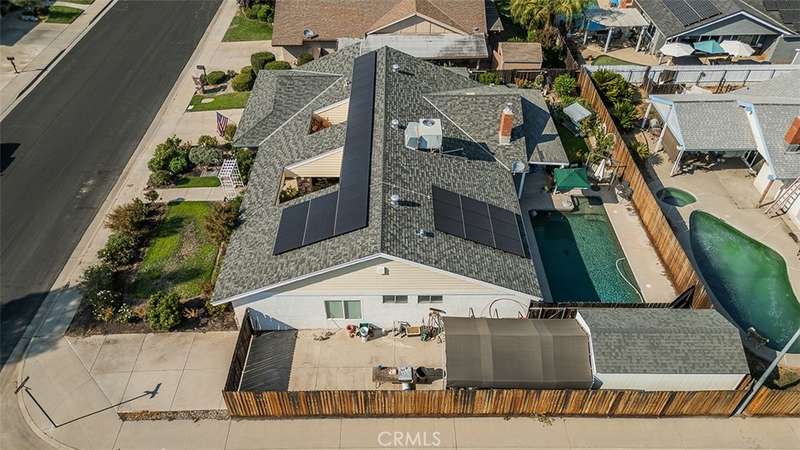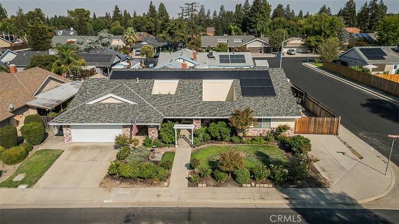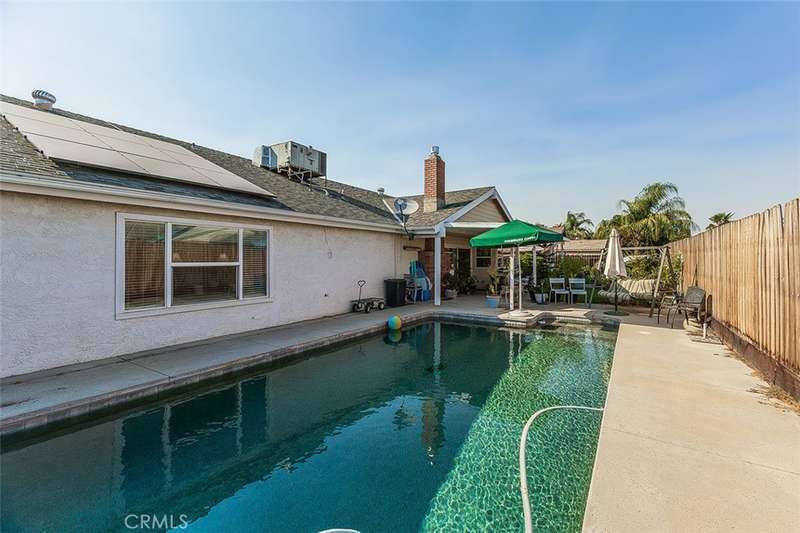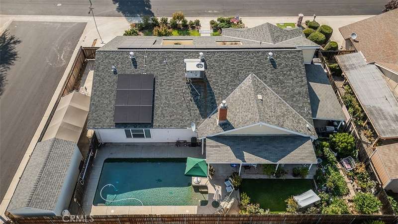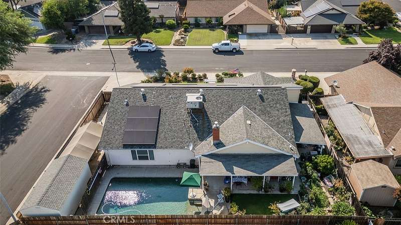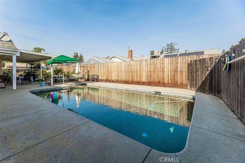 This well-maintained corner lot offers 2,210 sq ft of living space on a generous 9,000 sq ft lot. Featuring 4 bedrooms and 2 bathrooms, the home was tastefully updated between 2 throughout the home. The primary suite has been expanded for comfort (you must see it!), and two spacious living areas provide plenty of room for entertaining or relaxing. Flooring includes laminate, carpet, and pebble stone flooring. Custom-designed ceilings adds a touch of character throughout the home.The backyard is built for enjoyment with a 6 ft deep Pebble Tec pool, two covered patios, and a 7 ft fence installed just two years ago for added privacy. This property also includes 31 solar panels (loan approx. $238/month), RV capability, and negotiable items such as a 10x20 shop, fridge, washer, dryer, and movable carport. Seller carry is a possible option with a large down payment, making this a versatile opportunity.Virtual tour link is added, please request if you can't find it.