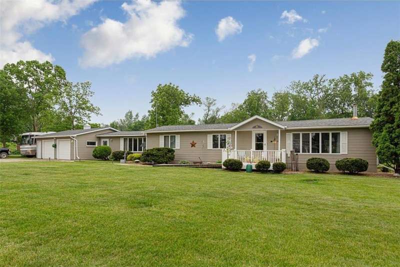 If you love nature, space, and serenity, this property is for you! Located just minutes from town, this charming home sits on over an acre with beautiful lake views and a private, wooded backyard — the perfect retreat for outdoor lovers. Enjoy your morning coffee in the three-season porch or entertain guests on the newer-built decks surrounded by trees & lakes. The home features a new roof (2019), oversized 2 car garage with space for workbench, 2 bedrooms and large office space, extra parking for an RV, and an outdoor storage shed for all your gear. With plenty of room to roam and relax, this property offers the best of both worlds — peaceful country living with convenient access to town amenities.