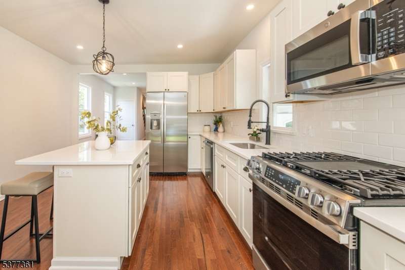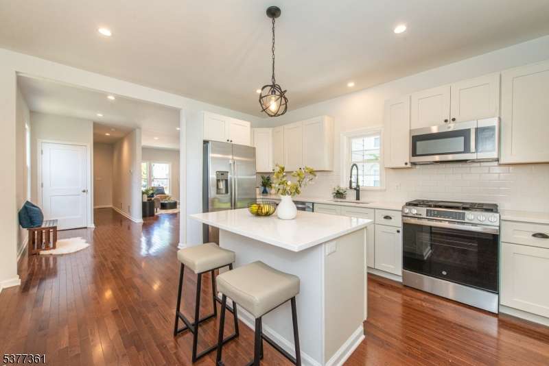 Welcome home to this spacious and beautifully renovated 3-bedroom, 3-bath colonial, reimagined from the studs up in 2025. Thoughtfully designed with modern living in mind, this home features all-new roof, siding, windows, plumbing, electric, utilities, and dual-zone climate control?offering comfort, efficiency, and peace of mind.Step into a bright and inviting foyer with a custom-made railing, abundant natural light, and gleaming hardwood floors that flow throughout both levels. The open-concept living and dining area is perfect for entertaining, while the eat-in kitchen boasts custom cabinetry, a large center island, and modern finishes. Just off the kitchen, you?ll find a full bath and a spacious family room with vaulted ceilings and sliders to the backyard.Upstairs features a convenient second-floor laundry room, two bedrooms with a generous hall bath, and a private primary suite complete with a walk-in closet and full en-suite bath.Ideally located near major highways, schools, and downtown Rahway, with easy access to Midtown Direct train service, dining, shopping, entertainment, and more. This turnkey home truly has it all?schedule your private showing today!
