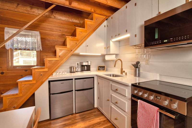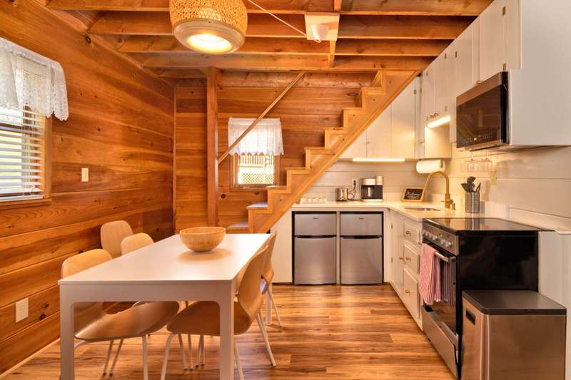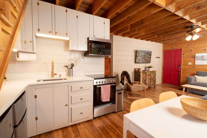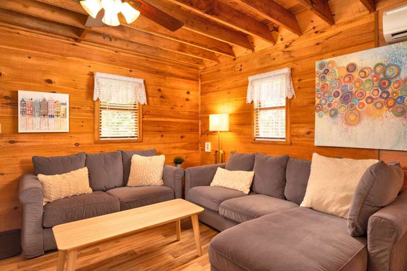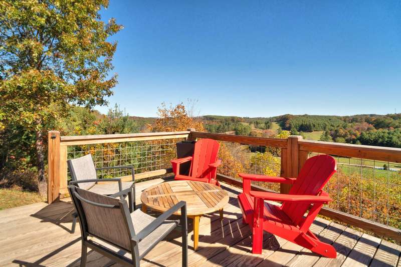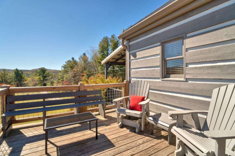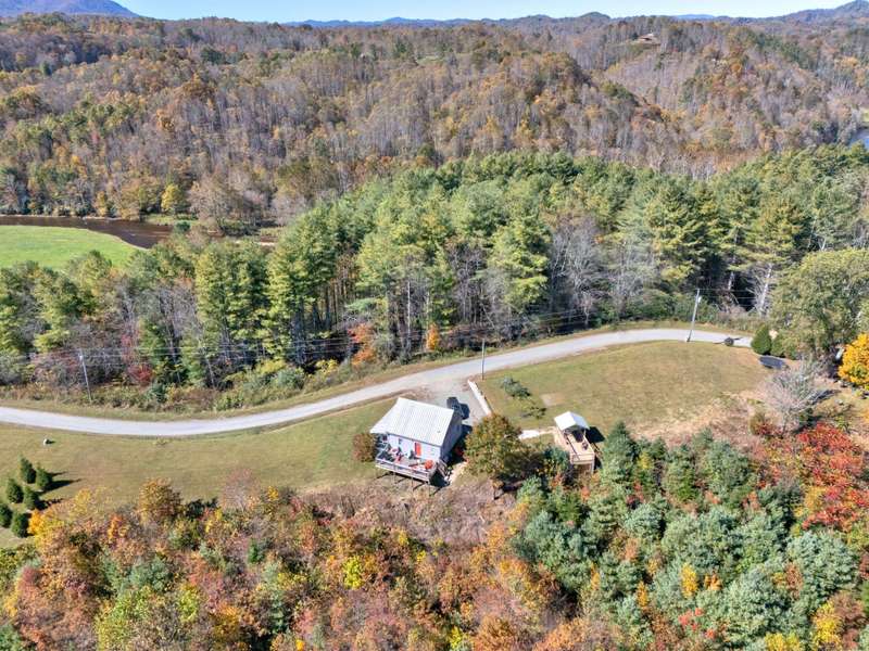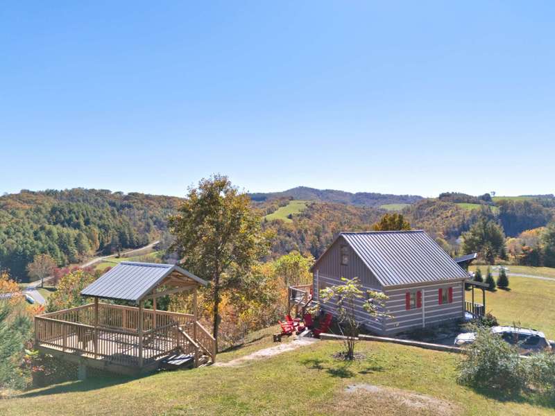 This sweet Blue Ridge Mountain cabin set on 2+ acres is ready to move in! This 2-bedroom, 1.5-bath, complete with furnishings inside and out, linens, and a fully stocked kitchen, you'll just need to pack a bag! Perched on a ridge overlooking the New River, it boasts long and short-range rolling mountain views. Enjoy sunsets and sunrises from multiple outdoor spaces, including a large deck, a front porch with a swing, and an elevated gazebo overlooking the river. Don't forget the fire pit area for toasty nights by the fire, stargazing, and making mountain memories. On the main level, the home features an open concept living room with kitchen and dining area, primary bedroom, and full bath with laundry. The second floor features two sleeping areas and a half bath. The home has been decorated with a simple, modern touch, allowing the details of the wood walls and beams to shine. The New River is just a short 1/4 mile drive away for kayaking, canoeing, and fishing. Grayson Highlands State Park is just a short drive away for a hike along the Appalachian Trail, as are many other great hiking spots in the West Jefferson/Ashe County area. The home has been a successful Airbnb, and a new owner could continue with those rentals to bring in extra income. The lot is even large enough that you could add a home should you choose. Don't miss this opportunity to own your mountain getaway! Call for more information about a private viewing of our listing W141.
