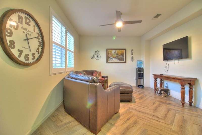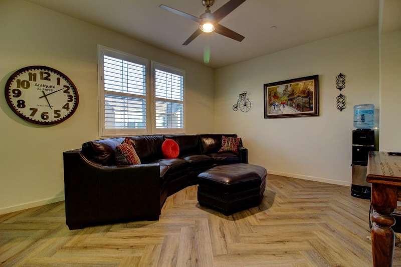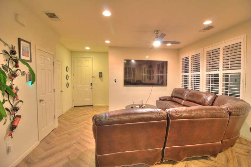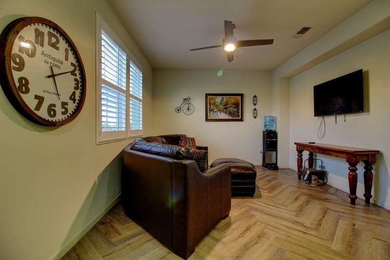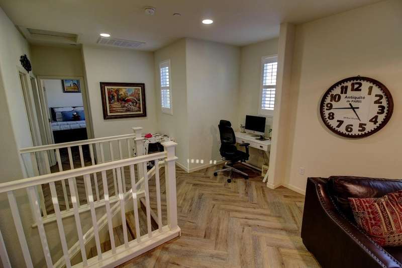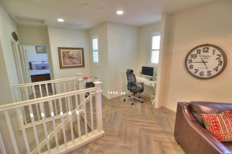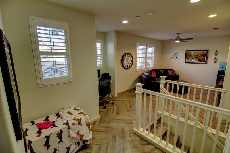 Discover this stunning home where modern elegance meets warm, inviting charm. Step inside & be captivated by the luxury vinyl flooring in a stylish herringbone pattern t/o. The spacious family room is perfect for entertaining or unwinding that will accommodate any TV size for weekend games. Any chef will feel @ home in the sleek kitchen, featuring granite counters, upgraded stainless-steel appliances, including a gas range, hood, dishwasher, & microwave. The kitchen offers room for an island or cozy nook, plus a double-door pantry for ample storage & a convenient indoor laundry room. Upstairs, a generous loft complements two spacious bedrooms & a hall bath w/ a shower over tub. The primary suite is an oasis, complete w/ a large ensuite w/ a soaking tub, shower stall, dual sink vanity, & two walk-in closets. Furthermore there are NEW plantation shutters, stylish ceiling fans t/o, a Nest Thermostat, a water filtration system, & an owned alarm system that add to the home's appeal. The low-maintenance backyard has a charming gazebo provides the perfect setting for evening gatherings or weekend BBQs. Located in within minutes of shopping, parks, restaurants, public transportation, & several schools. This home also includes ample guest parking. Come see this exceptional home!