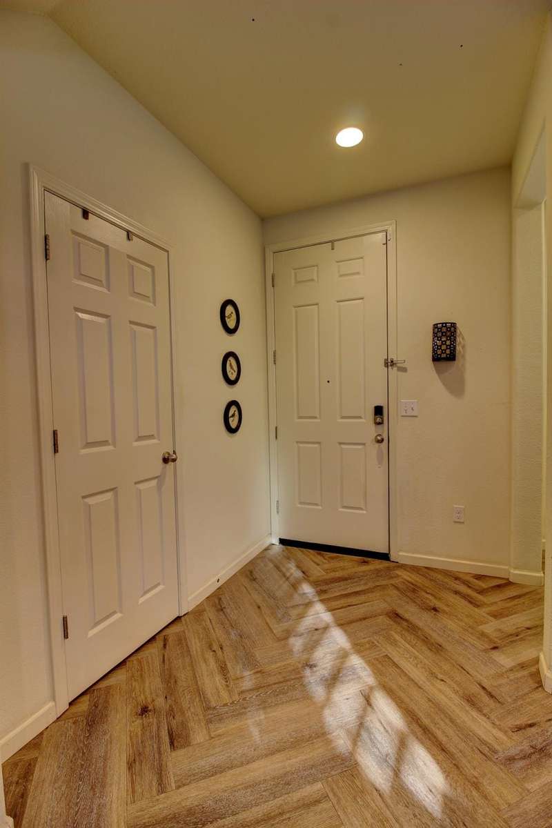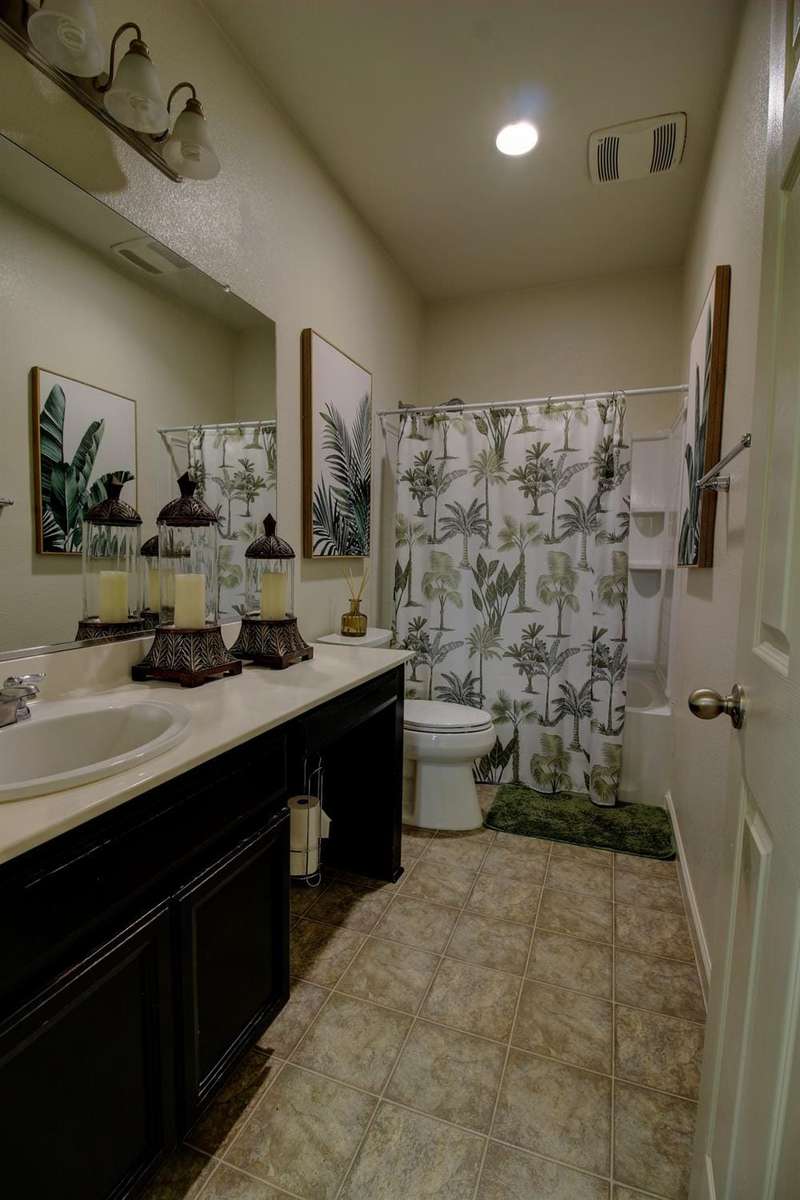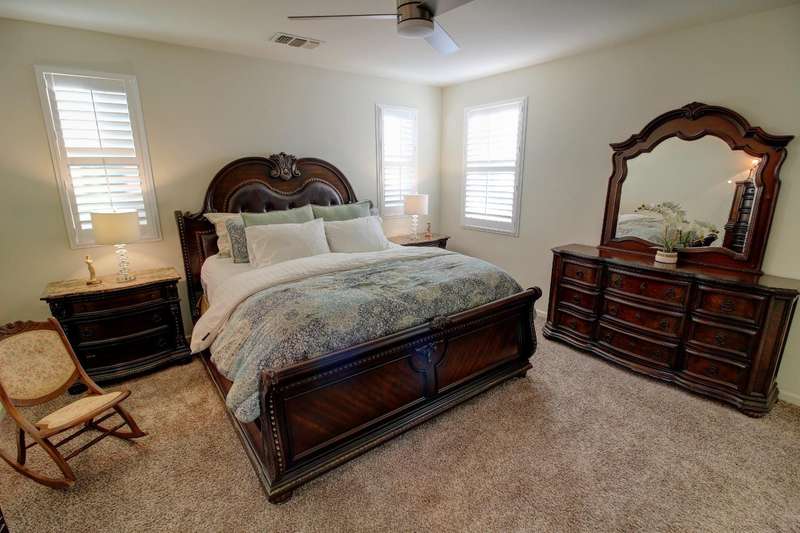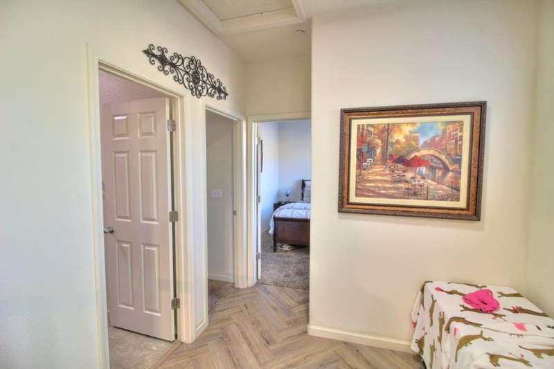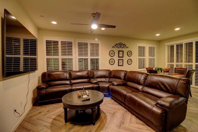 Discover this stunning home where modern elegance meets warm, inviting charm. Step inside & be captivated by the luxury vinyl flooring in a stylish herringbone pattern t/o. The spacious family room is perfect for entertaining or unwinding that will accommodate any TV size for weekend games. Any chef will feel @ home in the sleek kitchen, featuring granite counters, upgraded stainless-steel appliances, including a gas range, hood, dishwasher, & microwave. The kitchen offers room for an island or cozy nook, plus a double-door pantry for ample storage & a convenient indoor laundry room. Upstairs, a generous loft complements two spacious bedrooms & a hall bath w/ a shower over tub. The primary suite is an oasis, complete w/ a large ensuite w/ a soaking tub, shower stall, dual sink vanity, & two walk-in closets. Furthermore there are NEW plantation shutters, stylish ceiling fans t/o, a Nest Thermostat, a water filtration system, & an owned alarm system that add to the home's appeal. The low-maintenance backyard has a charming gazebo provides the perfect setting for evening gatherings or weekend BBQs. Located in within minutes of shopping, parks, restaurants, public transportation, & several schools. This home also includes ample guest parking. Come see this exceptional home!