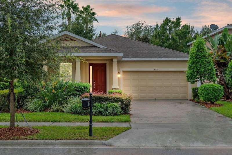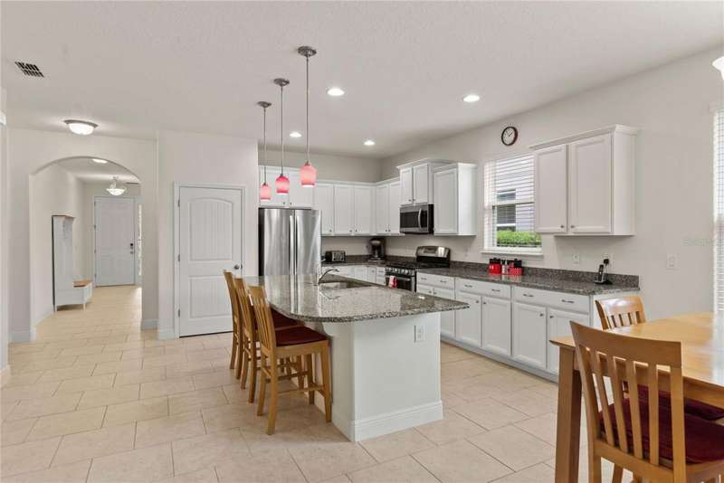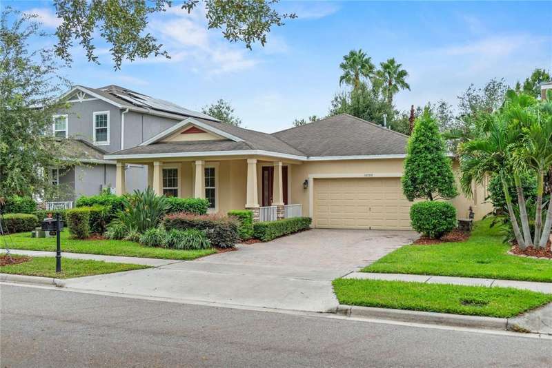 Under contract-accepting backup offers. MOVE IN READY home in Winter Garden's Summerlake community. Built by DR Horton, the 'Englewood floor plan features 3 beds/2 baths, an office/den, formal dining, family room, large kitchen, a 2 car garage, a covered front porch, a back patio with an extended concrete pad and NO REAR NEIGHBORS! The foyer welcomes you into the home with the den/office on your left with the formal dining room next to it. Walk further into the heart of the home to the kitchen that features custom Timberlake 36 cabinets with crown molding, with the microwave vented to the outside, stainless steel appliances with a new garbage disposal, microwave and fridge, a large island with a breakfast bar, a closet pantry, plenty of cabinet space and granite counter. The kitchen is open to the breakfast nook and spacious family room that has glass sliders leading to the covered and extended patio that has a gas line hook up. What a great space to enjoy your morning coffee or unwind after a long day! The owner's suite is off the family room, features two walk-in closets, a sitting area and an en-suite bath with 2 granite top, 'adult height vanities, a corner soaking tub, a glass enclosed, tiled shower and separate water closet. The guest bedrooms are down the hall and share the guest bath with an 'adult height granite top vanity with two sinks, and a tub/shower combo. The laundry room is inside and includes a sink and is across from the door leading to the two-car garage that has storage racks in the ceiling. Beautifully maintained, additional updates include ceiling fans in every room, pendant lights in the kitchen, a new disposal, microwave and fridge. Summerlake features a lakefront clubhouse, resort style pool, walking trails, fitness center, dog parks, and the HOA takes care of the lawn! Conveniently located in the heart of Horizon West, minutes from great shopping, dining and Winter Garden Village. Make this beautiful home yours today!