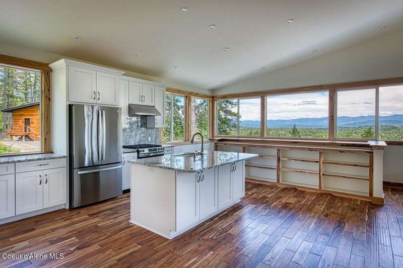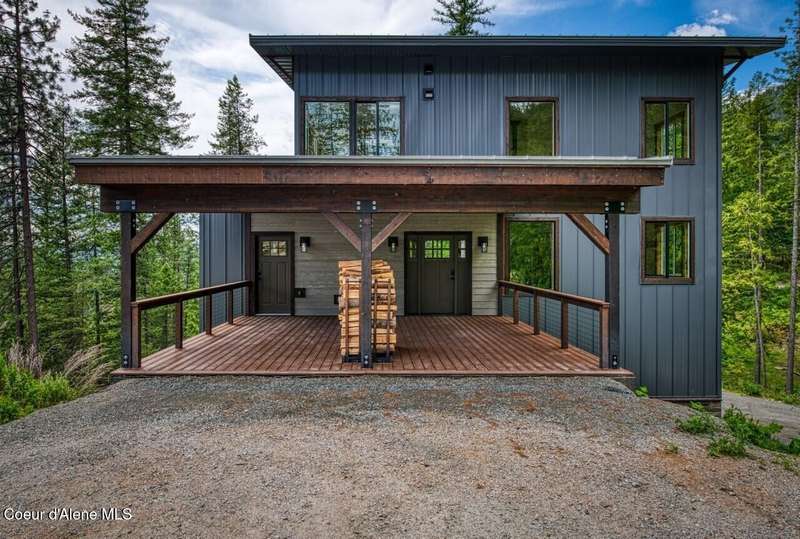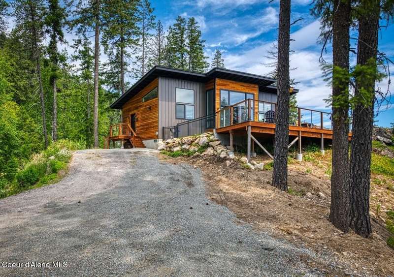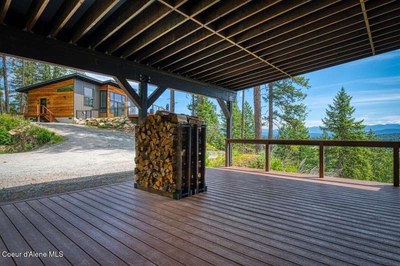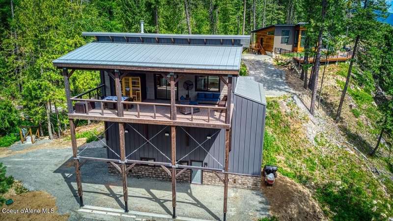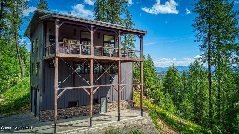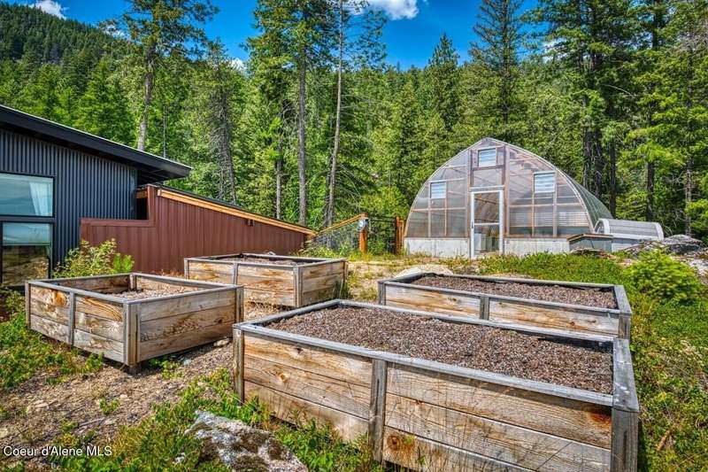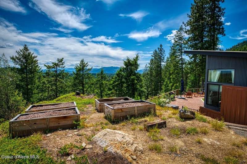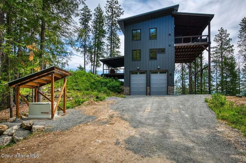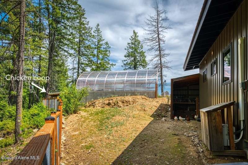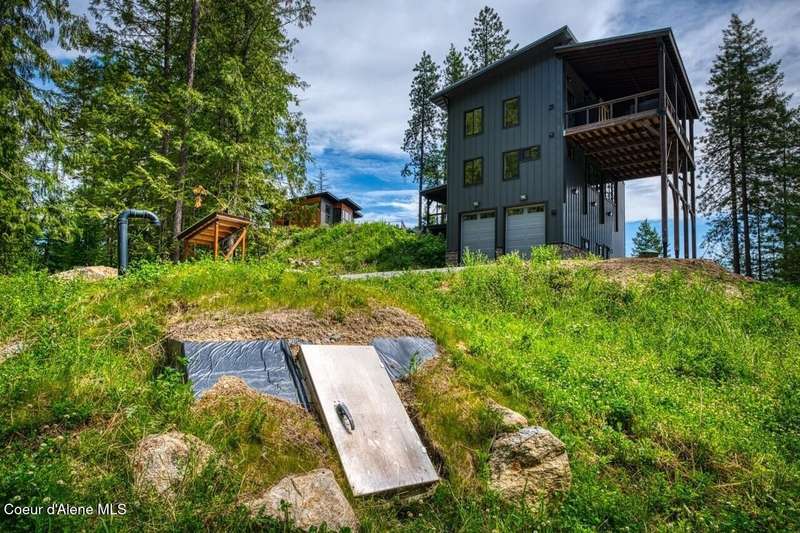 Whether you envision a peaceful escape, a self-sustaining homestead, or a luxurious forever home, this property is a rare gem that embodies the best of North Idaho living. Designed with self-sufficiency in mind, the property boasts of TWO HOMES and is ready for any lifestyle. A 7x12 underground root cellar provides ample storage, while an 18x32 gothic-arch greenhouse supports year-round gardening. Raised garden beds and a chicken coop further enhance the homestead appeal. A generator ensures both homes remain powered in any situation. Built in 2020, the main house shines with gleaming granite counters, stainless steel appliances, wood stove and heated floors throughout. Expansive windows flood the space with natural light, framing jaw-dropping mountain and lake views, while a generous deck extends the living space outdoors. Master suite with sliding door to deck, walk-through closet with built-ins, and en suite bathroom boasting tile-and-glass shower with dual heads. Efficient mini-split systems ensure year-round comfort. Ideal for guests, extended family, or even rental potential, the newly constructed second home offers three levels of low-maintenance elegance. The top floor 860 sq. ft. studio apartment is a stand out with real hardwood Acacia floors, custom built ins, Blaze King wood stove, full bathroom with heated floors, stackable washer/dryer and stylish, well appointed kitchen. Not to mention its sizable covered porch with outdoor shower and exceptional views. The 1000+ sq. ft. second floor offers a generous bonus room, non-conforming bedroom and full bathroom with heated floors too. Underneath it all is a 24x44 multi-use garage with dual high clearance doors, hydronic heat and a safe room in the making, for extra storage, with covered, full RV hook up just outside. Located just minutes from vibrant downtown Sandpoint, this retreat strikes the perfect balance between secluded tranquility and convenient access to local amenities.