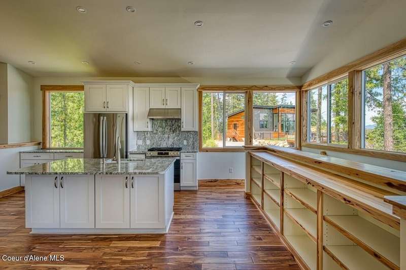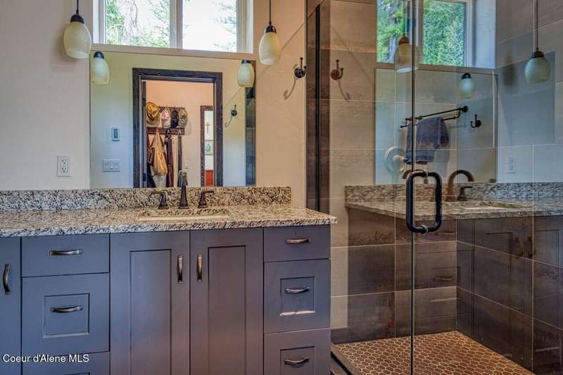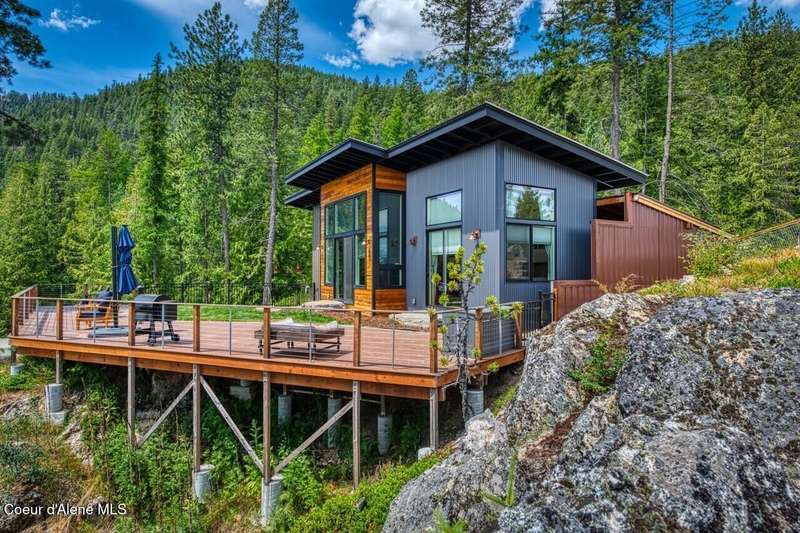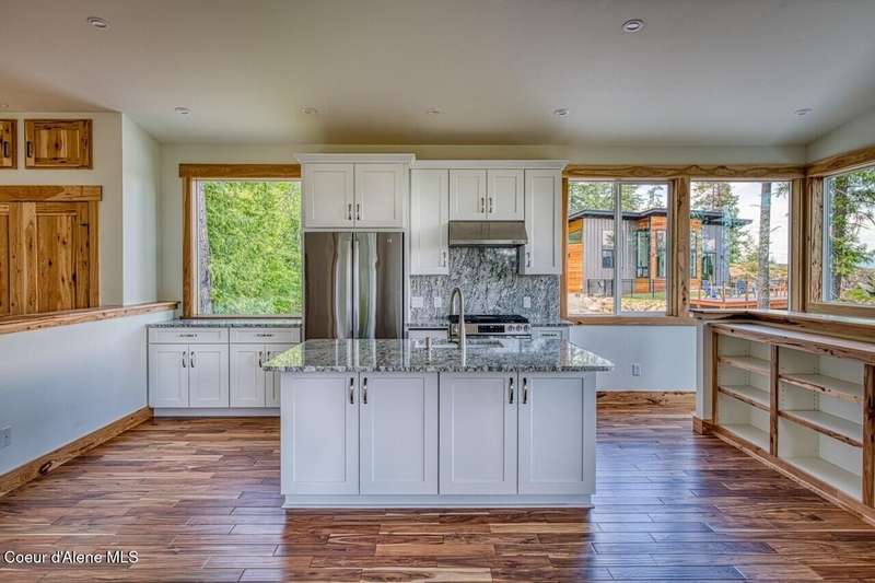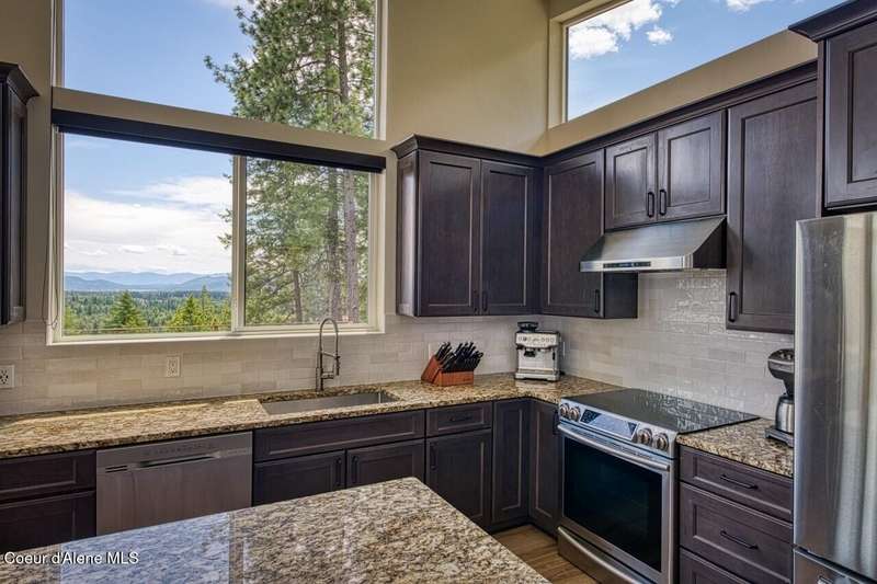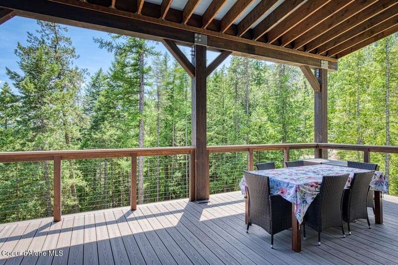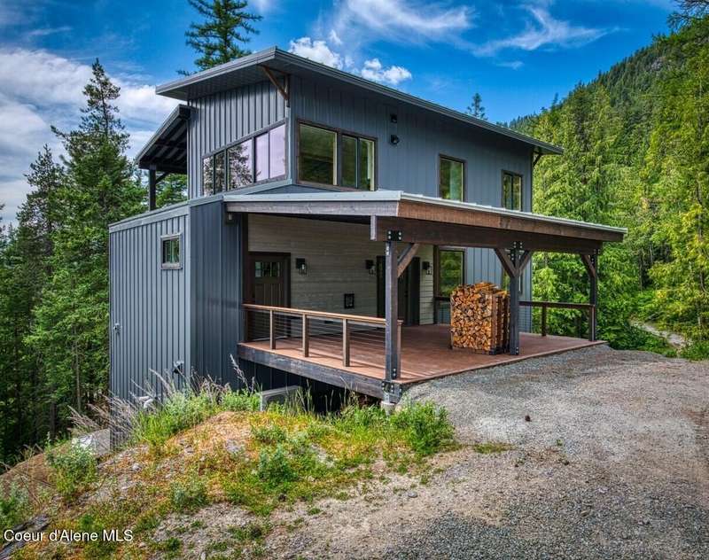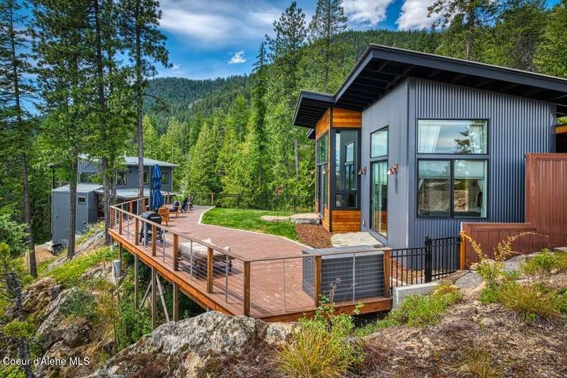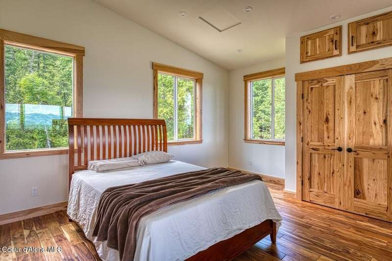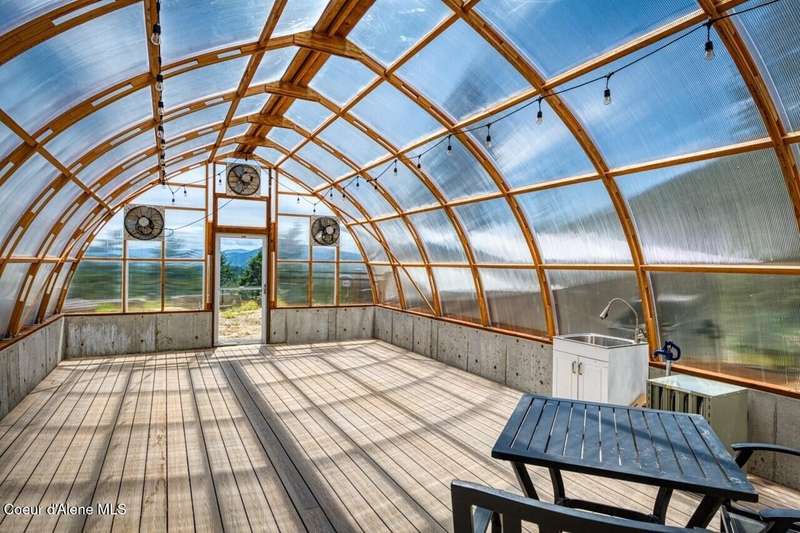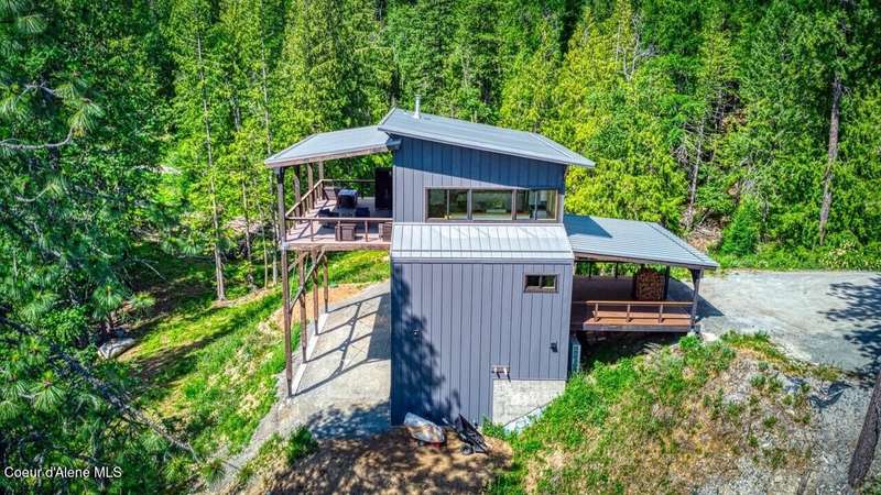 Whether you envision a peaceful escape, a self-sustaining homestead, or a luxurious forever home, this property is a rare gem that embodies the best of North Idaho living. Designed with self-sufficiency in mind, the property boasts of TWO HOMES and is ready for any lifestyle. A 7x12 underground root cellar provides ample storage, while an 18x32 gothic-arch greenhouse supports year-round gardening. Raised garden beds and a chicken coop further enhance the homestead appeal. A generator ensures both homes remain powered in any situation. Built in 2020, the main house shines with gleaming granite counters, stainless steel appliances, wood stove and heated floors throughout. Expansive windows flood the space with natural light, framing jaw-dropping mountain and lake views, while a generous deck extends the living space outdoors. Master suite with sliding door to deck, walk-through closet with built-ins, and en suite bathroom boasting tile-and-glass shower with dual heads. Efficient mini-split systems ensure year-round comfort. Ideal for guests, extended family, or even rental potential, the newly constructed second home offers three levels of low-maintenance elegance. The top floor 860 sq. ft. studio apartment is a stand out with real hardwood Acacia floors, custom built ins, Blaze King wood stove, full bathroom with heated floors, stackable washer/dryer and stylish, well appointed kitchen. Not to mention its sizable covered porch with outdoor shower and exceptional views. The 1000+ sq. ft. second floor offers a generous bonus room, non-conforming bedroom and full bathroom with heated floors too. Underneath it all is a 24x44 multi-use garage with dual high clearance doors, hydronic heat and a safe room in the making, for extra storage, with covered, full RV hook up just outside. Located just minutes from vibrant downtown Sandpoint, this retreat strikes the perfect balance between secluded tranquility and convenient access to local amenities.