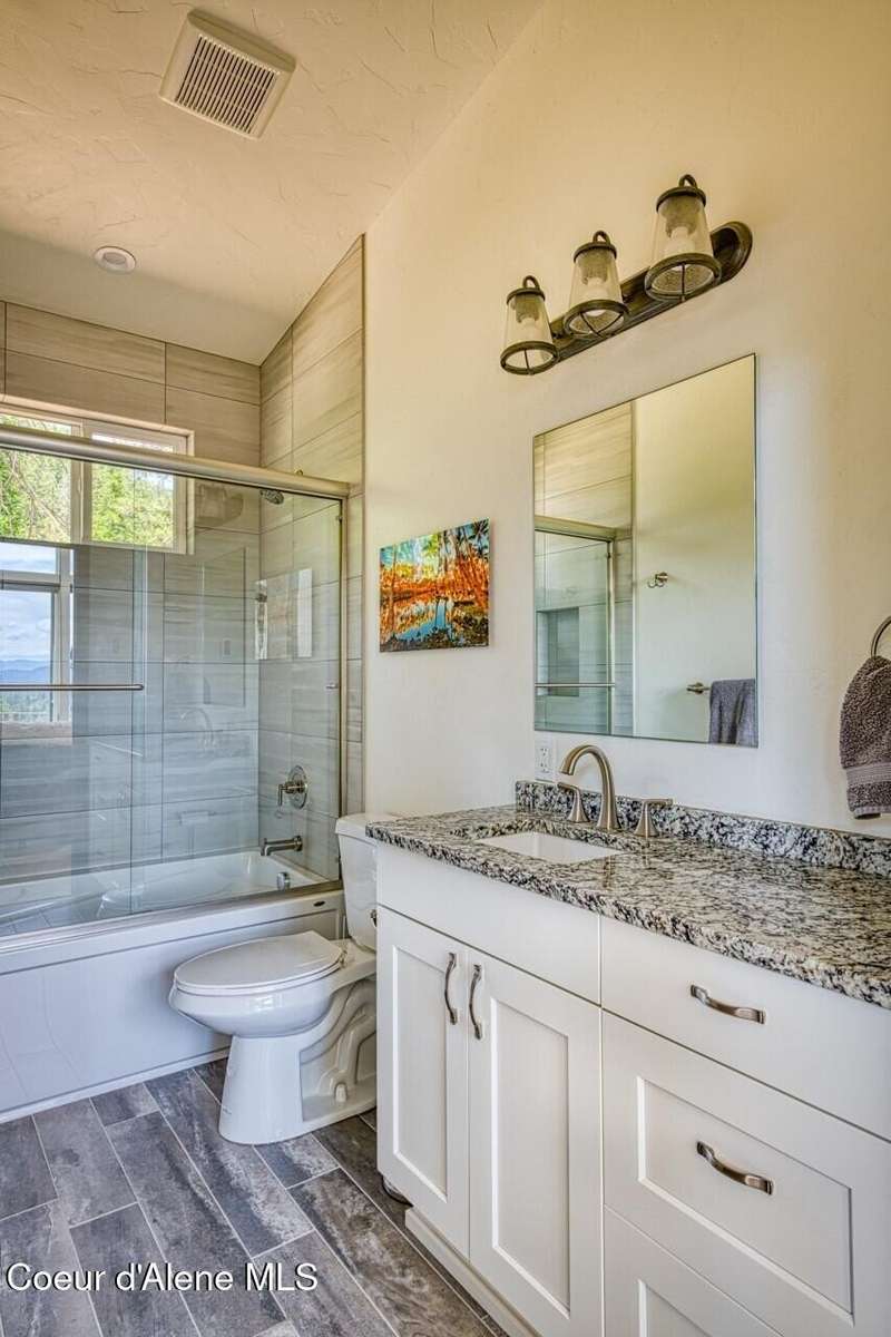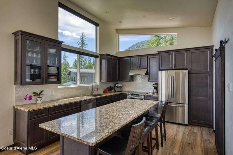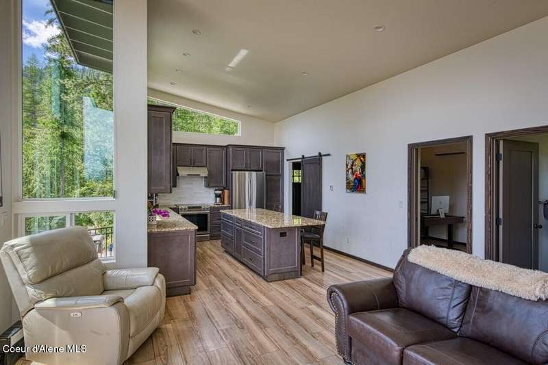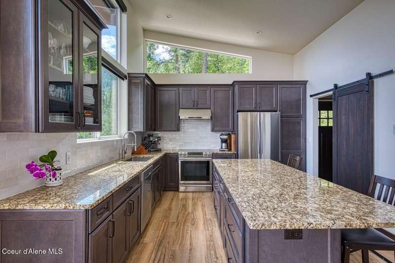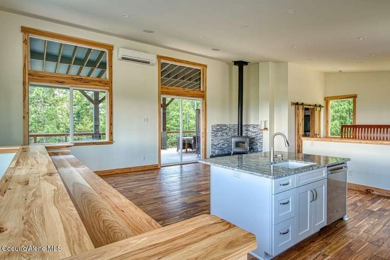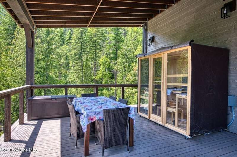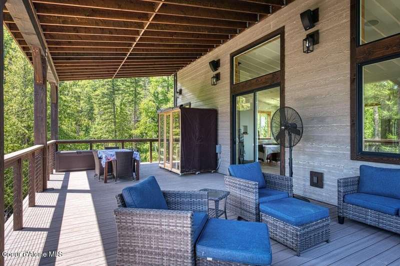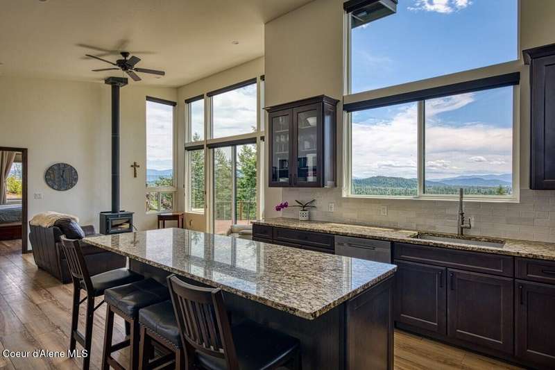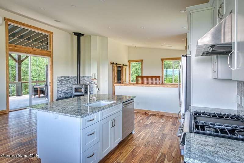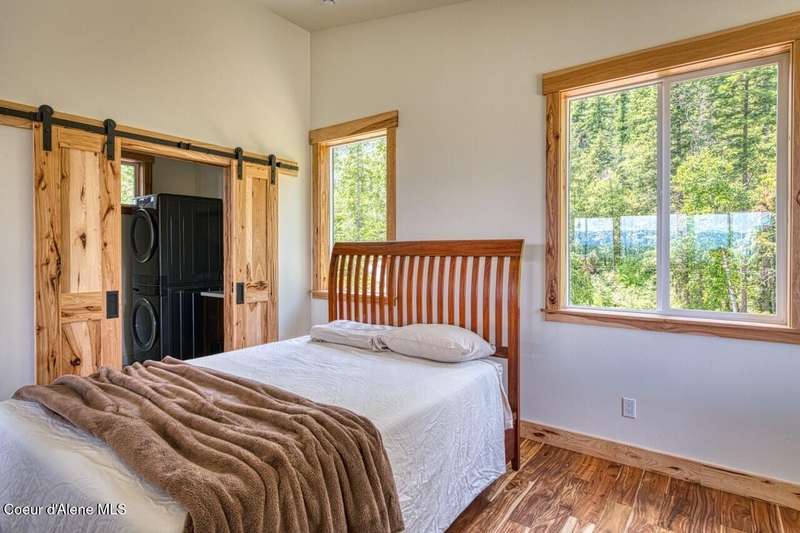 Whether you envision a peaceful escape, a self-sustaining homestead, or a luxurious forever home, this property is a rare gem that embodies the best of North Idaho living. Designed with self-sufficiency in mind, the property boasts of TWO HOMES and is ready for any lifestyle. A 7x12 underground root cellar provides ample storage, while an 18x32 gothic-arch greenhouse supports year-round gardening. Raised garden beds and a chicken coop further enhance the homestead appeal. A generator ensures both homes remain powered in any situation. Built in 2020, the main house shines with gleaming granite counters, stainless steel appliances, wood stove and heated floors throughout. Expansive windows flood the space with natural light, framing jaw-dropping mountain and lake views, while a generous deck extends the living space outdoors. Master suite with sliding door to deck, walk-through closet with built-ins, and en suite bathroom boasting tile-and-glass shower with dual heads. Efficient mini-split systems ensure year-round comfort. Ideal for guests, extended family, or even rental potential, the newly constructed second home offers three levels of low-maintenance elegance. The top floor 860 sq. ft. studio apartment is a stand out with real hardwood Acacia floors, custom built ins, Blaze King wood stove, full bathroom with heated floors, stackable washer/dryer and stylish, well appointed kitchen. Not to mention its sizable covered porch with outdoor shower and exceptional views. The 1000+ sq. ft. second floor offers a generous bonus room, non-conforming bedroom and full bathroom with heated floors too. Underneath it all is a 24x44 multi-use garage with dual high clearance doors, hydronic heat and a safe room in the making, for extra storage, with covered, full RV hook up just outside. Located just minutes from vibrant downtown Sandpoint, this retreat strikes the perfect balance between secluded tranquility and convenient access to local amenities.
