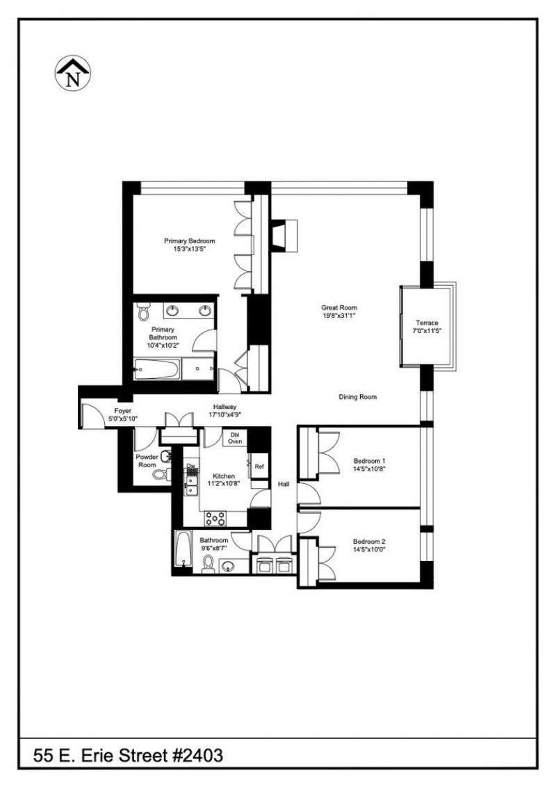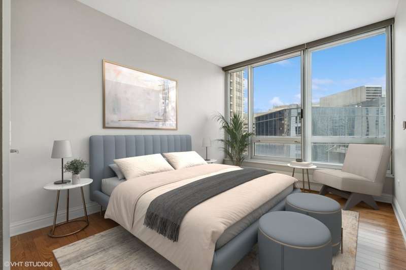 Available immediately. Perfect River North location. Beautifully finished 3BR, 2.1BA corner unit home with a spacious open floor plan & large balcony. Impressive northeast corner city views, hardwood floors throughout, fireplace, 9'6ceilings. Kitchen with gas cook top, double ovens, all SS appliances. Primary bedroom with marble bath, dual sinks, jacuzzi tub and separate shower. All three bedrooms have blackout shades. Brand new, full size washer/dryer. One heated garage space for additional $350/month. Full amenity building with friendly, 24hour door staff, property manager on site, maintenance team, receiving room. Indoor pool, party room & gym on 12th floor. No smokers. Pets negotiable. Tenant pays all processing/move fees: $300 application/processing fee, $500 move-in fee and $500 refundable damage deposit.