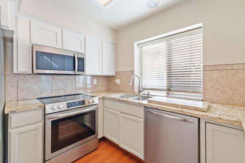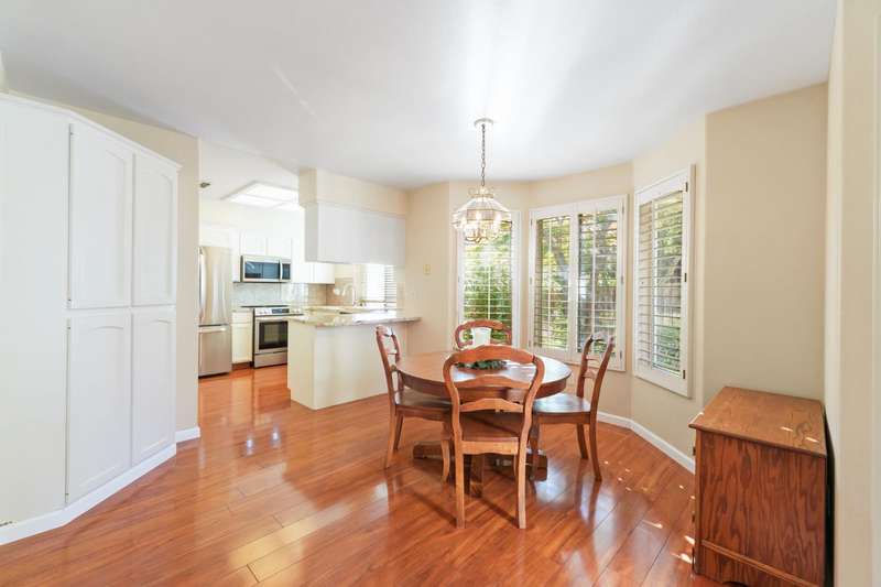 Welcome to Champlain Heights, a gated North Fresno community in the highly rated Clovis Unified School District. This well-kept home places you steps from scenic walking trails and minutes from Woodward Park, with top restaurants, grocery stores, the library, coffee shops, and gyms all within an easy stroll.Inside, light hardwood floors, plantation shutters, and vaulted ceilings create an airy, inviting feel. Built-in shelves add style and smart storage, while natural light fills the home. The kitchen features granite countertops, a matching granite backsplash, stainless steel appliances, an eating area framed by bay windows, and a breakfast bar ideal for quick meals or extra prep space.A low-maintenance concrete patio offers a comfortable outdoor space for morning coffee or evening unwinding. Champlain Heights delivers ease, convenience, and walkability in one of Fresno's most desirable locations.