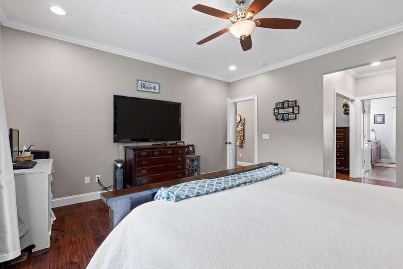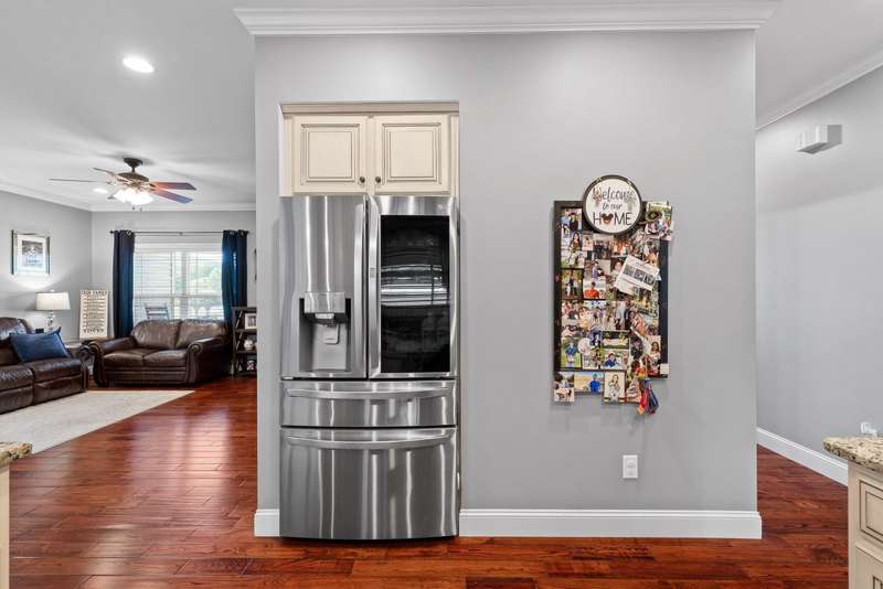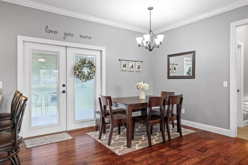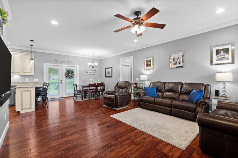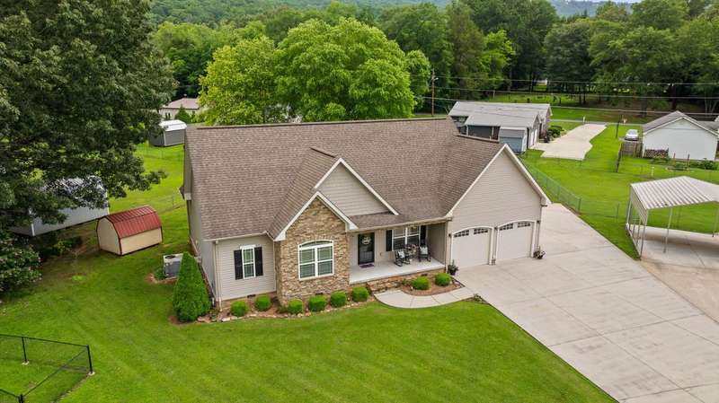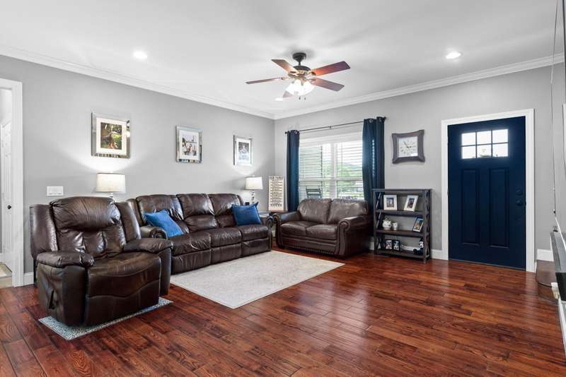 Welcome to 220 Charlene Place, where thoughtful design meets everyday comfort in the heart of Creek Meadow Estates. Nestled just off Battle Creek Road in South Pittsburg, this exceptionally well-maintained home offers a peaceful setting with timeless finishes throughout.From the moment you walk through the front door, you're greeted by gleaming hardwood floors, detailed crown molding, and a sense of warmth that feels like home. The open-concept layout flows seamlessly from the living room to the dining area and kitchen?making it perfect for both everyday living and entertaining. The kitchen features granite countertops, stainless steel appliances, custom cabinetry, and a spacious walk-in pantry, offering style and function in equal measure.The split-bedroom floor plan gives the primary suite added privacy, complete with dual his and hers closets and a luxurious ensuite bath with dual vanities, soaking tub, and tiled shower. Two additional bedrooms and a full bath are tucked away upstairs.Outside, enjoy a covered back porch overlooking a level backyard?ideal for quiet mornings or evening gatherings. The home also includes an encapsulated crawlspace, mature landscaping, and a spacious three-car garage offering room for vehicles, storage, or hobbies.If you're looking for quality construction, modern comforts, and a quiet neighborhood feel, 220 Charlene Place is ready to welcome you home.
