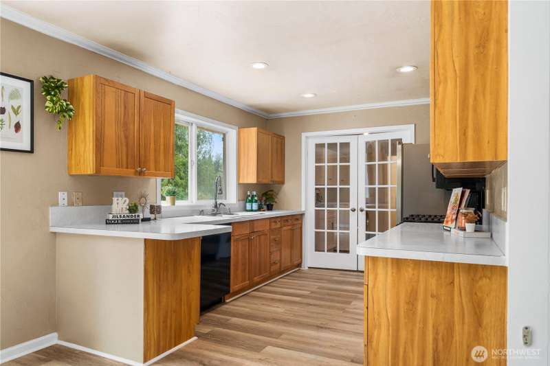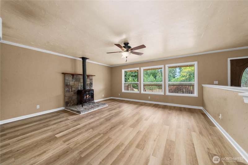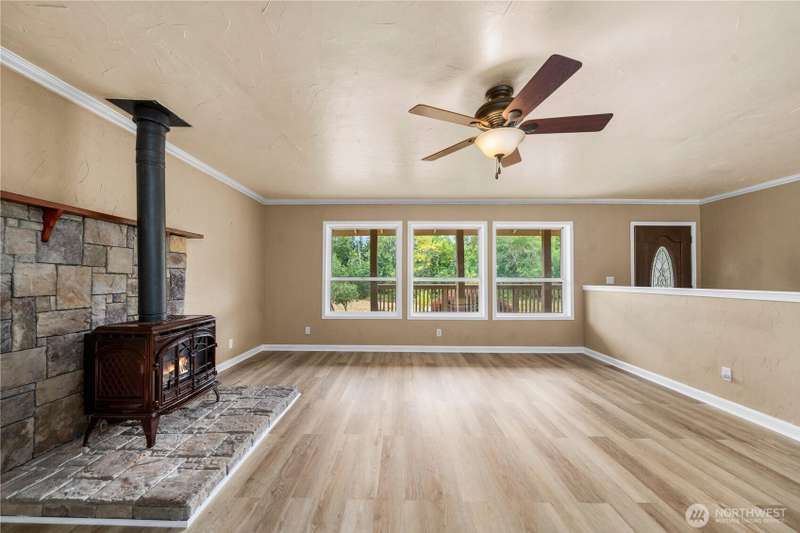 Welcome to this 3 bed 1.75 bath rambler nestled on 9.69 scenic park-like acres at the end of a long private driveway. It features a spacious layout w/ new flooring and newer paint. The kitchen is bright & inviting w/ newer appliances. French doors open to expansive rear patio, while large covered front porch offers a warm welcome. Add'l features include attached 2-car garage, a detached HUGE 4-BAY SHOP w/ RV parking, large carport, circular driveway with space for a semi-truck and trailer, & pump house w/ extra storage. Enjoy peace and privacy on well-maintained grounds featuring walking paths, a seasonal creek & pond with ducks, fruit trees, & garden space—perfect for multi-generational living, home-based business, or private retreat.