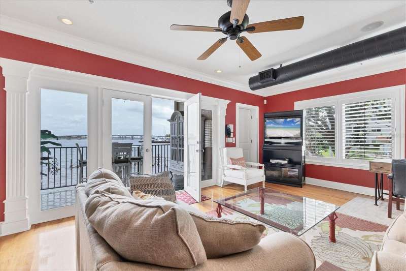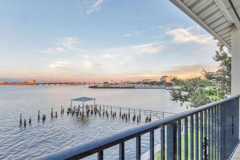Breathtaking views from this stunning 3 bedroom, 3 bath end unit townhome that comes with your own deeded boat slip with lift that can accommodate up to 12,500 lbs. An exclusive opportunity to own in this rarely available community of 12 units in the downtown hideaway community of Point Pleasant, convenient to marina, restaurants, and Riverwalk. This home has been beautifully decorated with a unique sense of style, perfect for entertaining family and friends, and you are sure to enjoy the sunset from either of the two porches overlooking the spectacular Manatee River. The private elevator was replaced in June 2025 making it so easy to access the 3 levels, and the A/C was replaced in July 2025. There are plantation shutters throughout along with the majestic crown molding, surround sound system and more. Safety features include a fire sprinkler system throughout and electric hurricane shutters that operate at the touch of a switch. The 2-car tandem garage has pulleys for storing your kayaks. Once you see this beautiful condo, you will fall in love! Call today to see it for yourself.